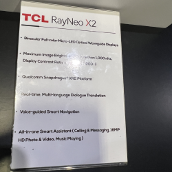 TCL Ray Neo X2 s Micro-LED displejem a procesorem Snapdragon XR2. Brýle disponují především chytrými funkcemi pro překlady, navigaci, hovory, čtení zpráv, přehrávání hudby a mají i možnost focení a pořizování videa 16 Mpx kamerou.