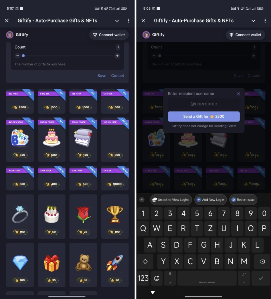Patříte mezi sběratele limitovaných dárků? Objevila se aplikace Giftify, která může automaticky nakupovat limitované dárky za vás. Vložíte do ní měnu Telegram Stars, nastavíte cenové limity a ona nově vydané dárky za vás nakoupí. Vytrácí se z toho již kouzlo, ale o takové aplikace začne být zájem.
