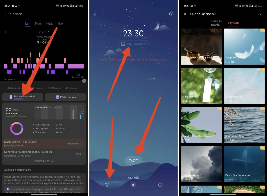 Je vlastně velká škoda, že Huawei Zdraví prozatím neumožňuje automatickou aktivaci funkce ve zvolené časy. Před spánkem tedy musíte spustit aplikaci, zapnout funkci a jít spát.