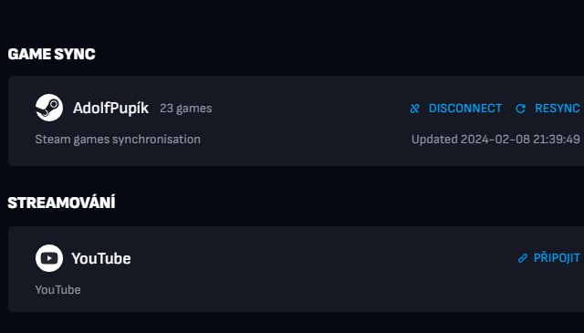 Nová aktualizace přináší synchronizaci Steam knihovny. Stačí přejít do nastavení účtu, a tam připojit svůj Steam účet. Všechny podporované hry se během chvilky objeví v položce „Moje hry“ a můžete je začít hrát.