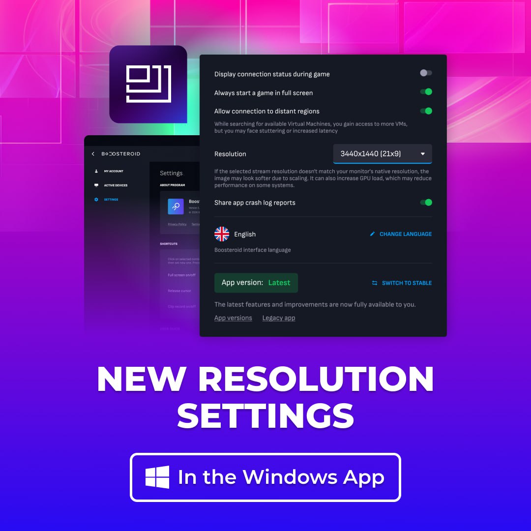 Boosteroid oznámil vydání důležité aktualizace aplikace pro Windows. Přináší možnost manuálně zasáhnout do rozlišení streamu, a to včetně poměru stran. Můžete tak mít větší kontrolu nad streamem oblíbené hry. Delší dobu je možné zapnout či vypnout lepší kodek AV1, vybrat server nebo datový tok podle potřeb uživatele.