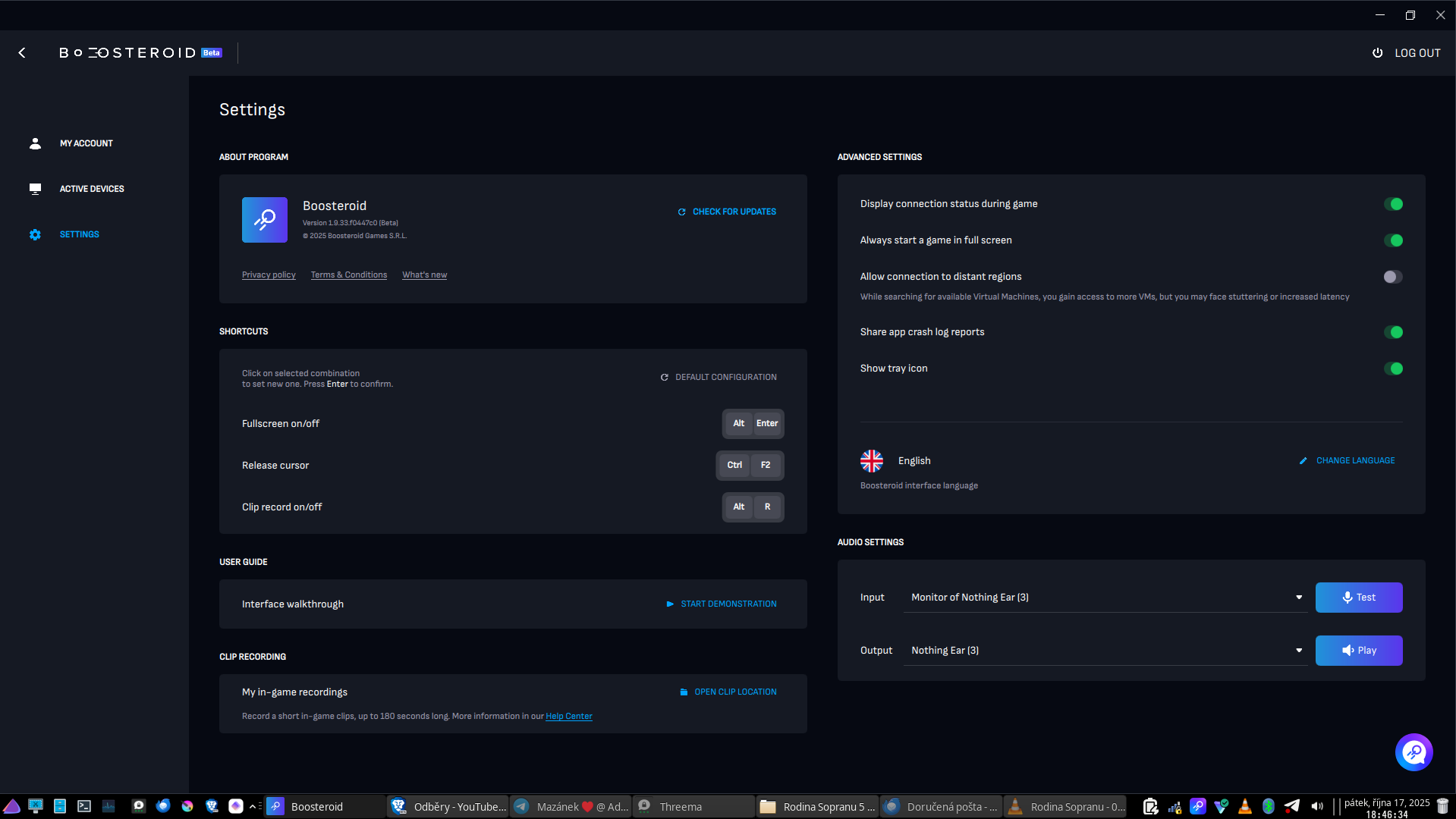 Oficiální aplikace Boosteroidu ve srovnání s webovou verzí nabízí lepší obraz při pomalejším internetovém připojení. Řekl bych, že lépe pracuje s video a audio kodeky, zvukový výstup v nastavení aplikace mi funguje lépe a celkově uživatel získá ze hraní lepší zážitek.