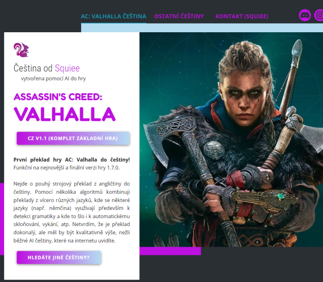 Není to tak dávno, co jsem v krátkém článku informoval o dostupném českém a slovenském překladu hry Starfield. Za češtinou stojí autorka Squiee, která nově vydala i češtinu do hry Assassin’s Creed Valhalla. Překlad je prozatím dostupný pro základní hru, ale brzy se pravděpodobně dočkáme i překladu všech DLC.