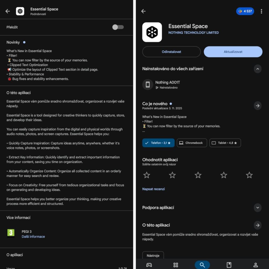 Nová verze je už dostupná v Obchodě Play pro majitele mobilů značky Nothing. Měl jsem možnost ji otestovat na vlajkovém modelu Nothing Phone (3). Nejde o velkou aktualizaci, ale i drobná vylepšení jsou jistě vítána.