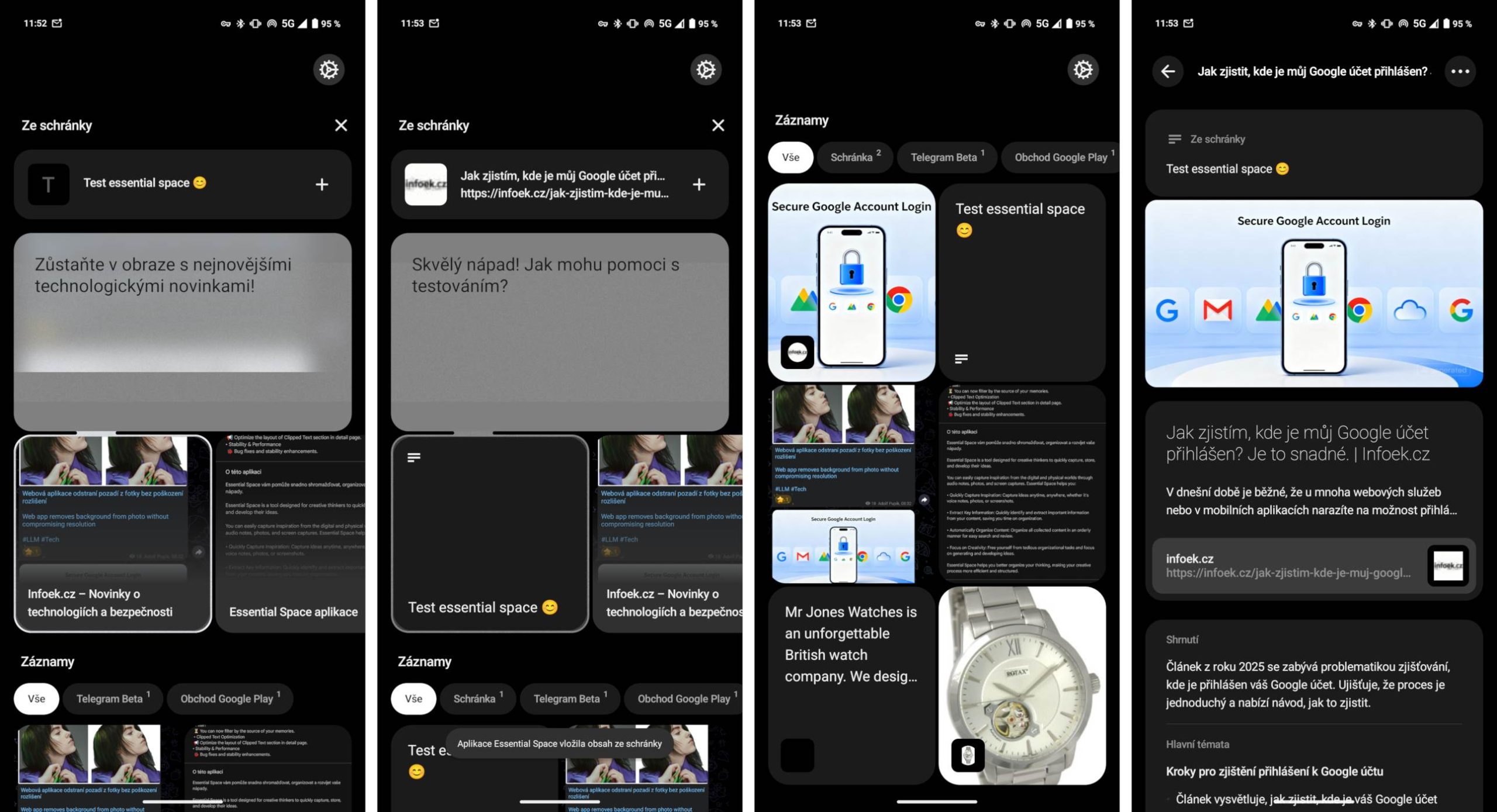 Osobně jsem zaznamenal spolehlivější stahování náhledových obrázků z článků po vložení odkazu a lepší vkládání jakéhokoli zkopírovaného textu či odkazů ze schránky. Konečně se v aplikaci objevilo také automatické třídění screenshotů s poznámkami – podle schránky nebo názvu aplikace, ze které byl snímek pořízen. Nothing dále uvádí, že aktualizace přináší opravy chyb a zlepšení stability.