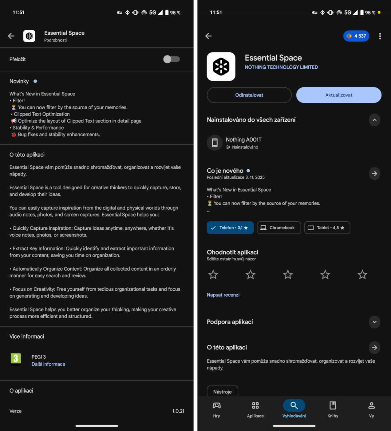 Nová verze je už dostupná v Obchodě Play pro majitele mobilů značky Nothing. Měl jsem možnost ji otestovat na vlajkovém modelu Nothing Phone (3). Nejde o velkou aktualizaci, ale i drobná vylepšení jsou jistě vítána.