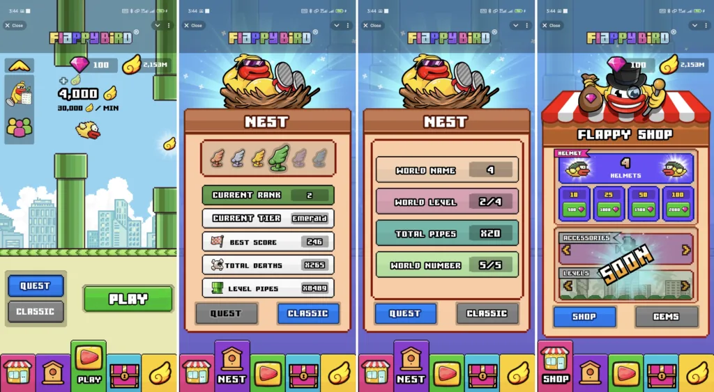 Flappy Bird je již pár měsíců k dispozici na platformě Telegram. Zahrát si ji tedy může každý uživatel této sociální sítě, a to na mobilu, tabletu nebo počítači bez ohledu na operační systém. Hra dostává pravidelné aktualizace a již má dva herní režimy. Poslední aktualizace může přinést trochu oživení, jelikož si můžete zakoupit ochrannou helmu a docílit tak většímu rekordu.