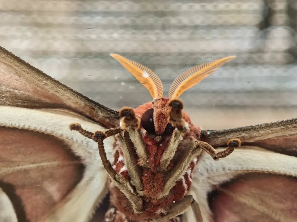Změnil jsem úhel, stále je motýl za sklem, 5x zoom