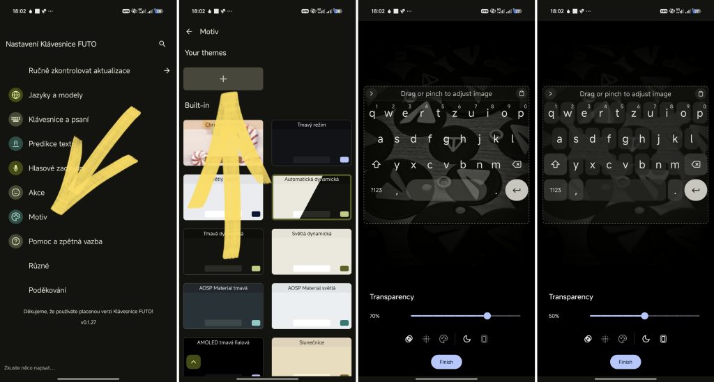 Pokud klávesnici FUTO používáte, doporučuji stáhnout její aktualizaci v 0.1.27. Přináší řadu oprav – například správné zobrazování na některých mobilech, minimalizaci, automatické opravy textu a další. Nově můžete zasáhnout do vzhledu a umístit do klávesnice vlastní obrázek.