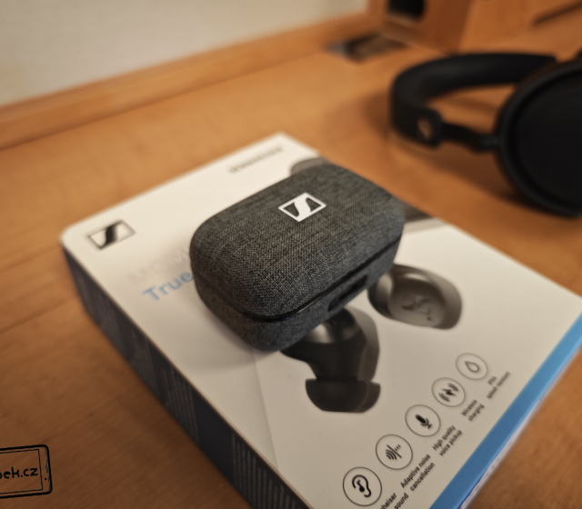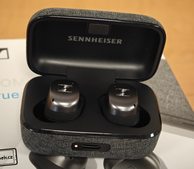 Sennheiser nám ukázal i kvalitní bezdrátová špuntová sluchátka. Samozřejmě se jedná o nejnovější model Sennheiser MOMENTUM True Wireless 3. Krabička má opět prémiové zpracování, ale tentokrát jsou výrazně hezčí samotná sluchátka. Krásné je jejich grafitové provedení, které v reálu vypadá mnohem lépe než na produktových snímcích.