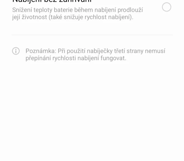 Na nabíjení až na výkon není většinou nic zajímavého, ale Infinix se u tohoto modelu opravdu činil. Po připojení originální nabíječky z balení se na zamykací obrazovce zobrazí nabíjecí režimy. Můžete tedy využívat maximální nabíjecí výkon “Hyper”, sáhnout po chytré regulaci nebo používat pomalé nabíjení pro uchování nízké teploty mobilu.