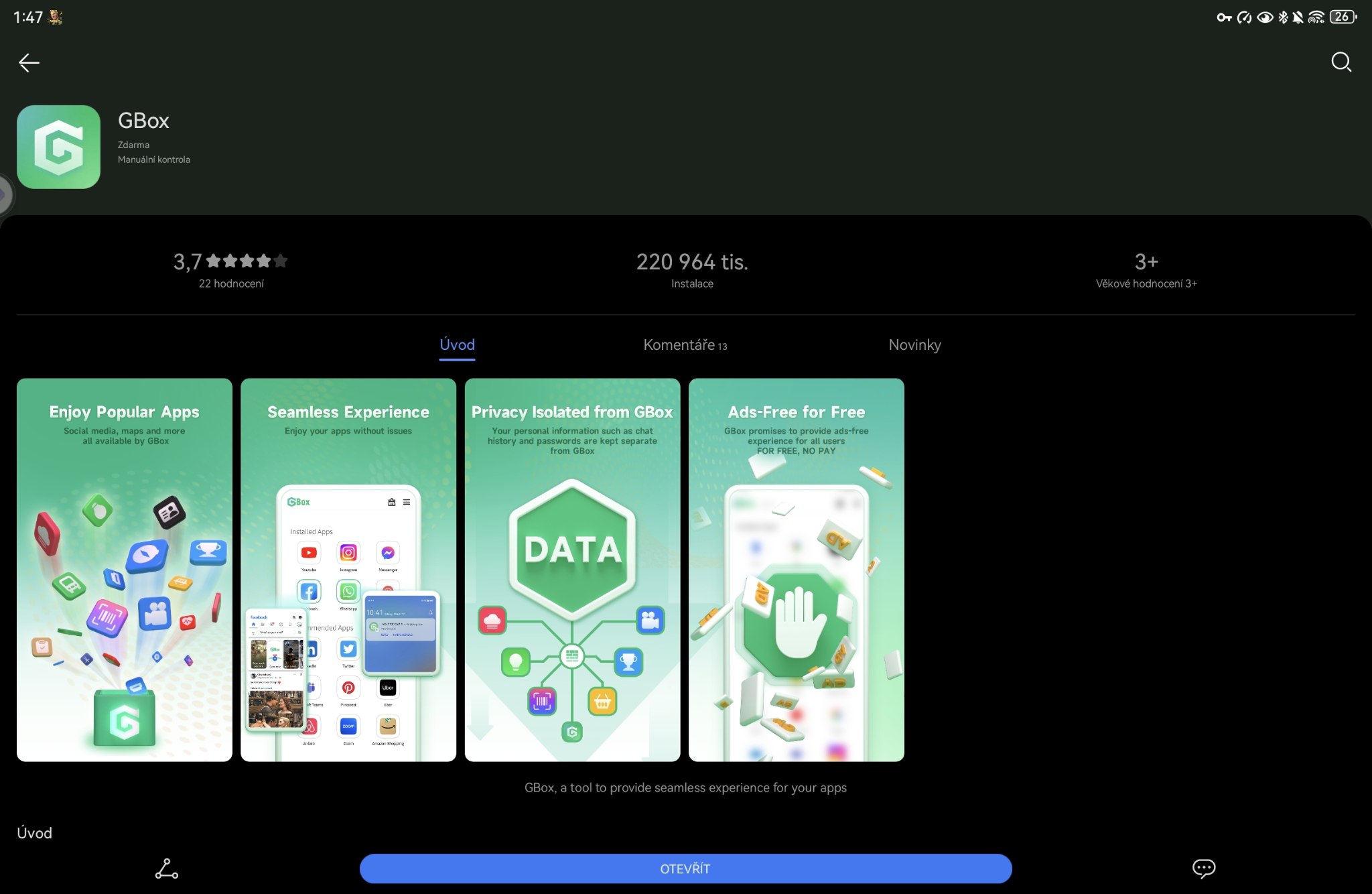 - Nemůžete aplikaci v AppGallery najít? Pak můžete přejít na stránky projektu Gboxlab.com a stáhnout si instalační APK soubor.