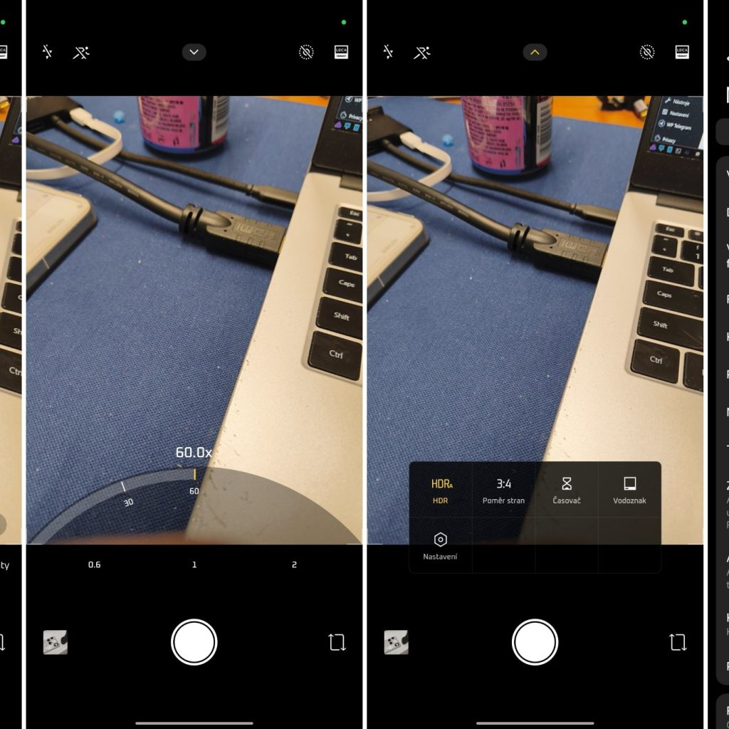 Pro zoom slouží spodní tlačítka a pod nimi jsou všechny důležité režimy, mezi nimiž je PRO s manuálním nastavením parametrů a možností ukládat do JPG nebo surového formátu RAW. V nastavení aplikace je také možnost fotit do formátu HEIC. Nechybí ani výborný noční režim, portrétní režim s rozostřeným pozadím, skenování dokumentů nebo panoramata.