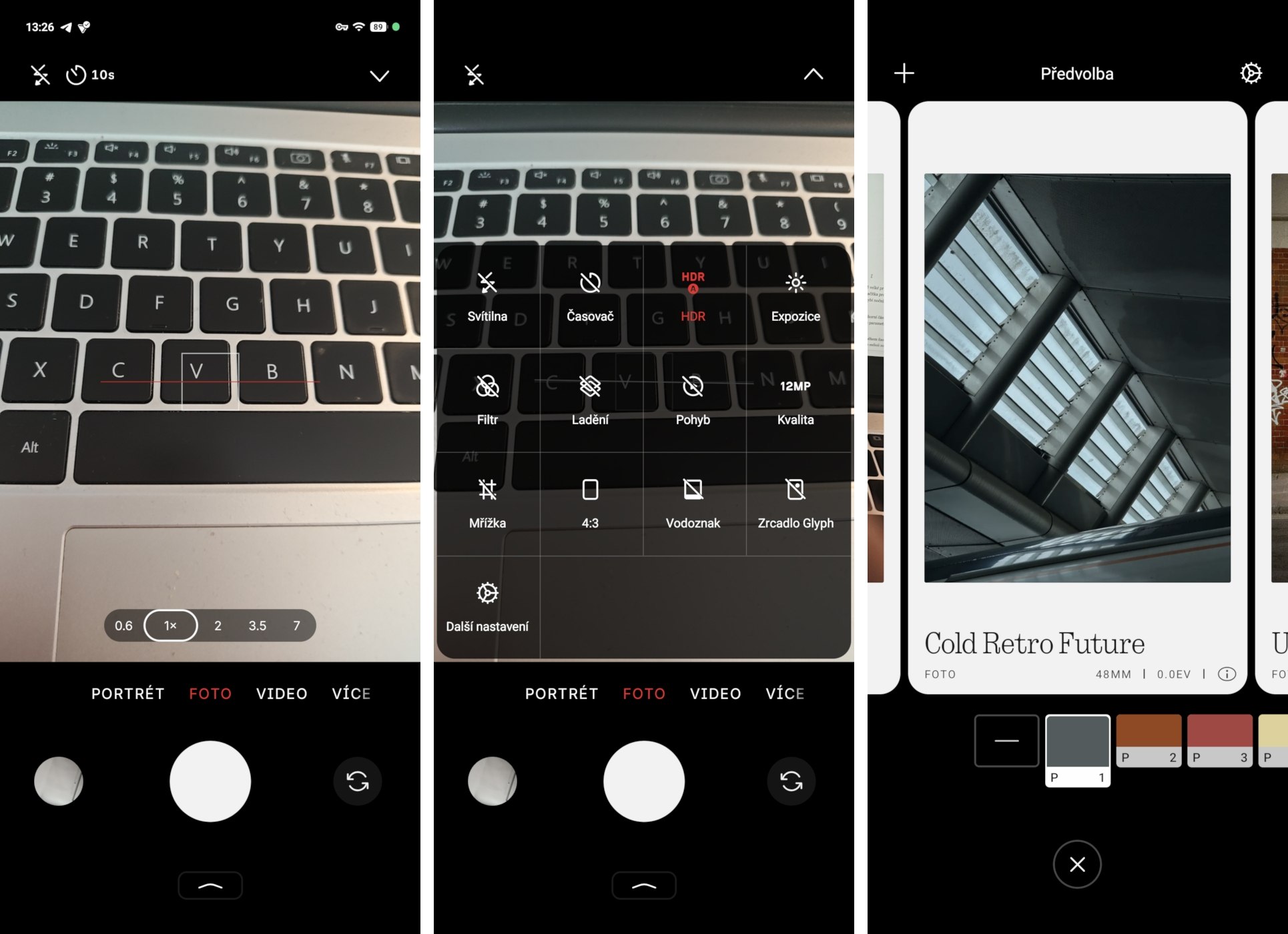 Patříte mezi náročnější mobilní fotografy? Oběma telefonům nechybí expertní režim pro podrobné nastavení parametrů. Zde můžete v horní části otevřít nabídku, kde je možnost zapnout pořízení surových RAW snímků. Pod spodní šipkou jsou k dispozici „Předvolby“. Já si je oblíbil – jedná se o pokročilé filtry s různým nastavením parametrů pro pořízení černobílých snímků, s nádechem retro a další. V aplikaci jich je dost, ale pokročilejší uživatelé si mohou do aplikace nahrát další, viz článek.
