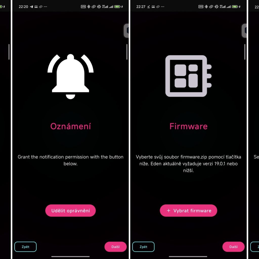 V době psaní tohoto článku bylo nutné nainstalovat starší verzi firmwaru v19.1. Po jeho stažení budete mít ZIP soubor. Nijak ho nerozbalujte, ale rovnou ho v Edenu nainstalujte. To je možné hned po prvotním spuštění aplikace, ale i později v: Nastavení aplikace, Spravovat data Eden, Nainstalovat firmware.