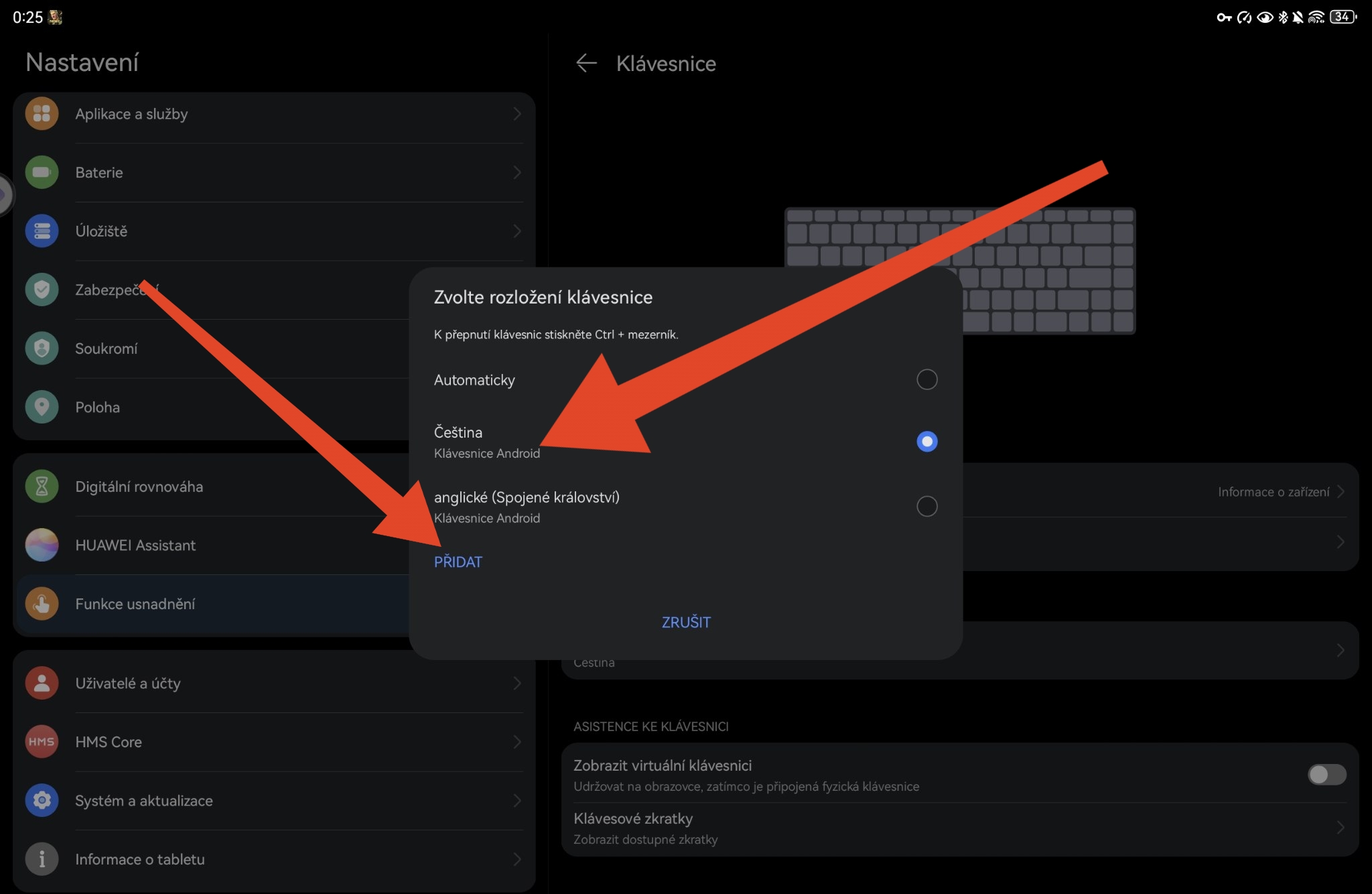 Jak na tabletu Huawei nastavit české rozložení klávesnice?