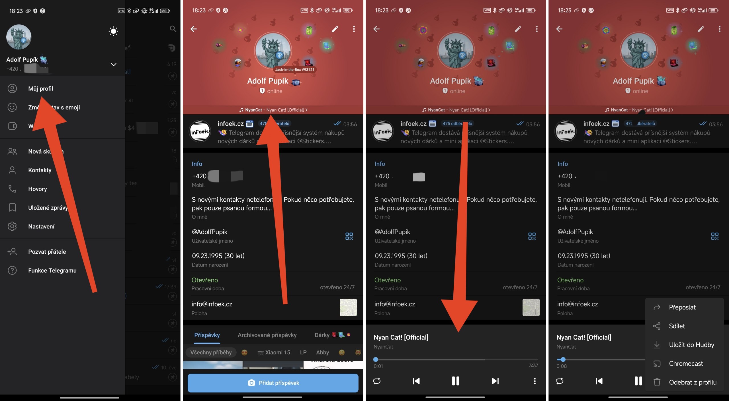 V beta verzích Telegramu bylo možné testovat novou funkci přidávání hudby na profil. Tato funkce je již dostupná pro všechny, i když ji zatím ne každý může využít – vychází postupně. Mnoho lidí však neví, jak si hudbu na profil přidat, i když je to vlastně snadné.