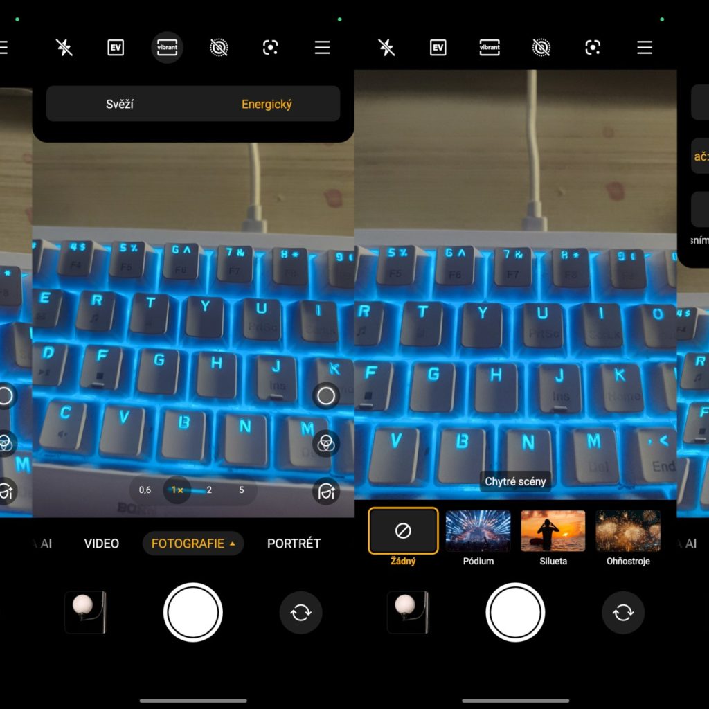 Výrobce do mobilu nasadil vlastní aplikaci, která během mého testování obdržela velkou aktualizaci. Uživatelské prostředí má dostatečně velké ovládací prvky, vše je vždy po ruce, ovládání je velmi svižné a stejně tak i přepínání mezi fotoaparáty nebo zoomování. Aktualizace přinesla dva režimy s nastavením barev – Vibrant a Crisp. Každý se hodí pro trochu jinou scénu, ale věřím, že většina lidí si oblíbí právě Vibrant.