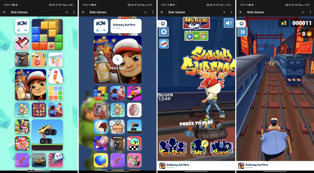 Jedná se o mini aplikaci, díky které dostanete zdarma přístup k různým hrám. Některé jsou známé méně a narazit můžete i na populární mobilní hry. Nabídka obsahuje Subway Surfers, Bounce a další.