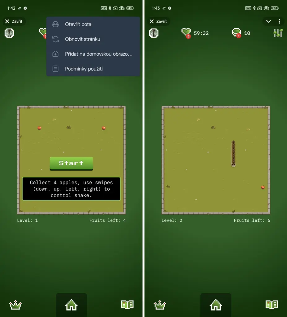 Podobné hry bylo možné hrát na starých Nokiích nebo třeba v internetovém prohlížeči. Open-source verzi hry s hezkou grafikou, hudebním dobrovodem a ovládáním jen pro jeden prst si nyní můžete zahrát přímo v Telegramu.