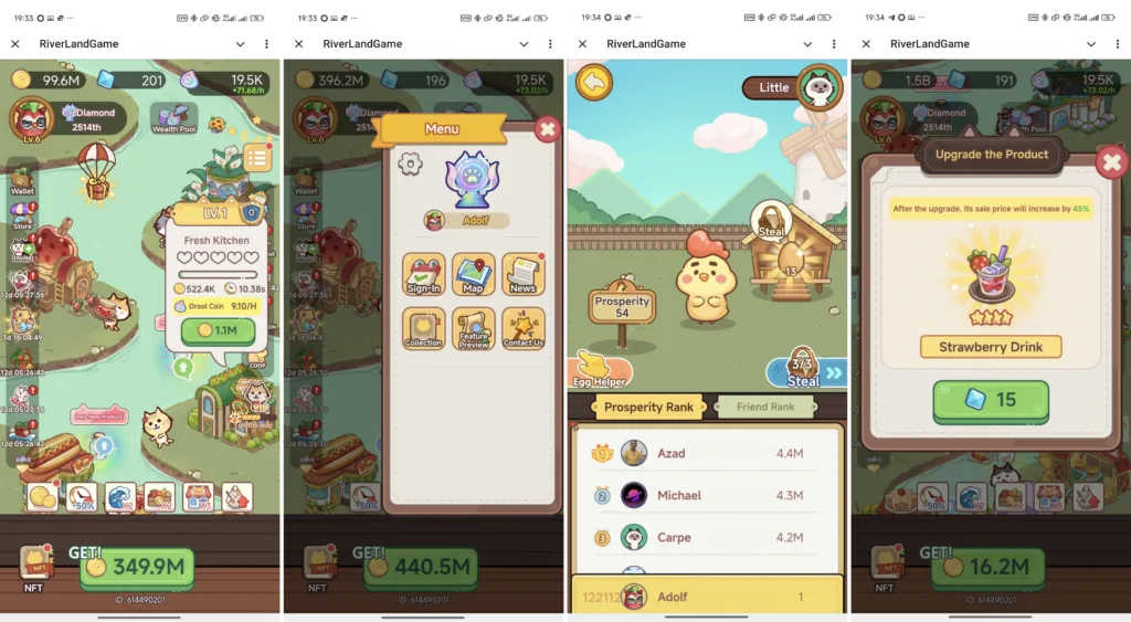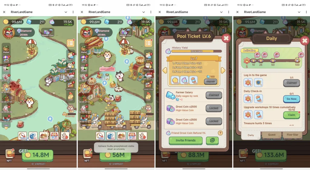V posledních týdnech se na Telegramu zviditelnila hra RiverLand. Vlastně máte svůj pozemek a v něm různé podniky. Musíte je vylepšovat, vyrábět více produktů a ty následně prodávat. Zkrátka vyděláváte stále více peněz a svůj pozemek rozšiřujete a vylepšujete. Plnit můžete i různé úkoly, za jejich splnění si vyzvednout bonusy, krást vajíčka statním hráčům a vlastně i peníze z jejich podniků.