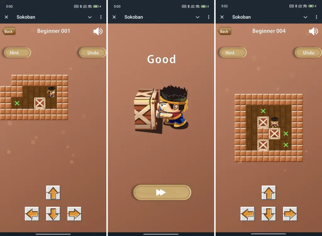 Kopíruje sice jiné staré hry, ale hraje se dobře pomocí šipek v displeji. Vašim úkolem je bedny přesunout na požadované místo. Začátek hry je jednoduchý, ale později musíte opravdu přemýšlet. Využít můžete tlačítka nápovědy vlevo nahoře. Tlačítko vpravo nahoře zas umí vrátit vaše kroky zpět.