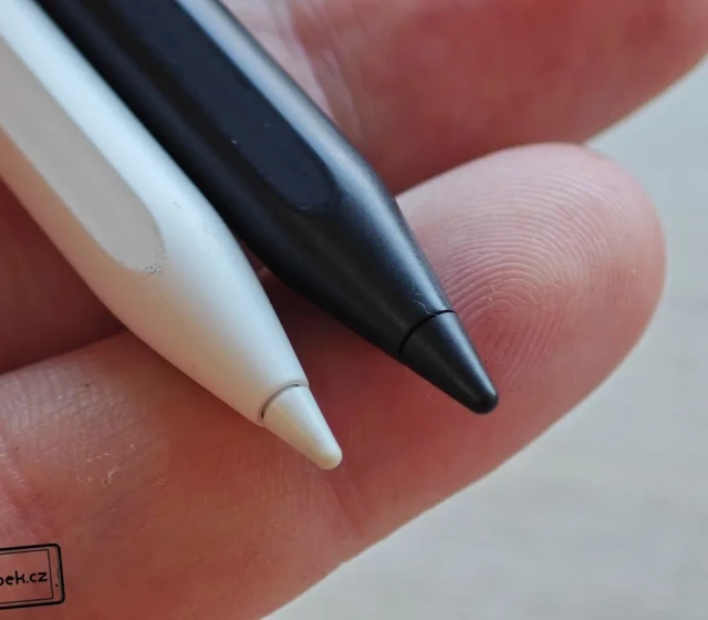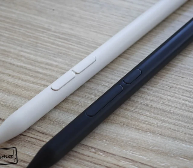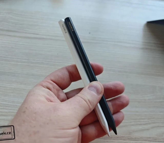 Jsem rád, že mám možnost porovnat příslušenství k menšímu Xiaomi Pad 6 s větším modelem Xiaomi Pad 6S Pro 12.4. Vedle sebe jsem mohl porovnat pero pro kreslení, psaní nebo právě snadné ovládání menších prvků během editace fotek a videí. Velikost obou per je totožná a vlastně velkou změnou neprošel ani design. Nový model je v hezčím černém provedení a najdeme na něm o jedno tlačítko navíc. To slouží jako červené ukazovátko, což se třeba ve firmách rozhodně může hodit a funguje to velmi dobře. Další tlačítka pak slouží pro rychlé vytvoření screenshotu o libovolné velikosti a režim psaní.