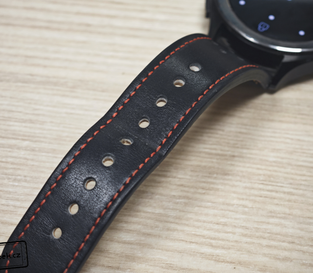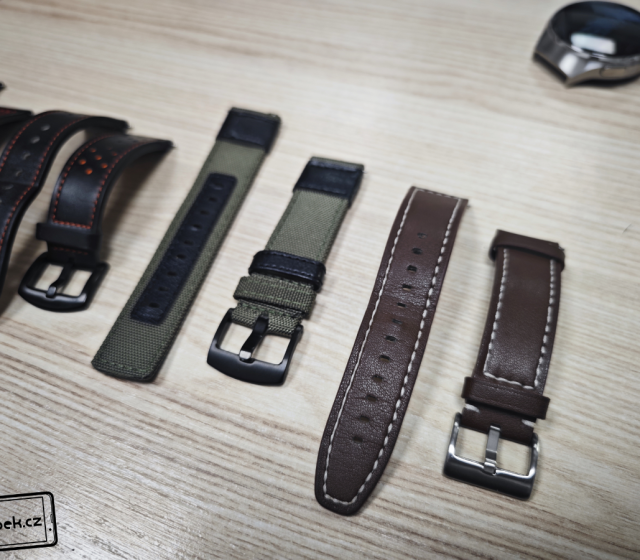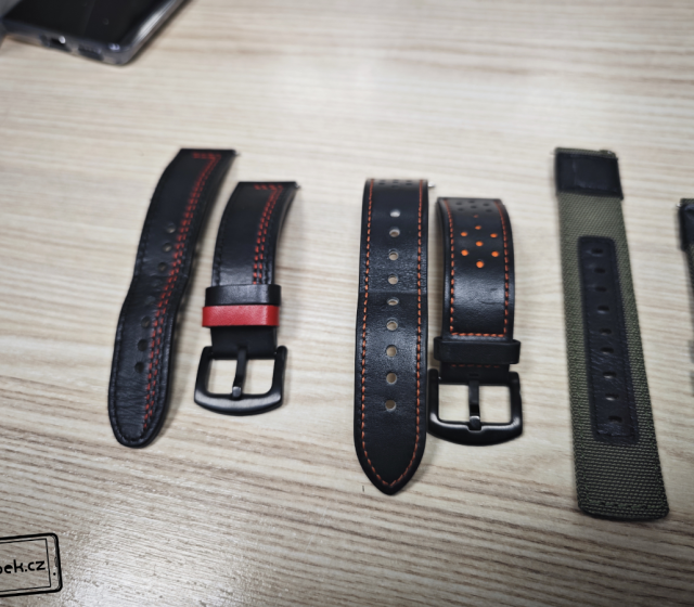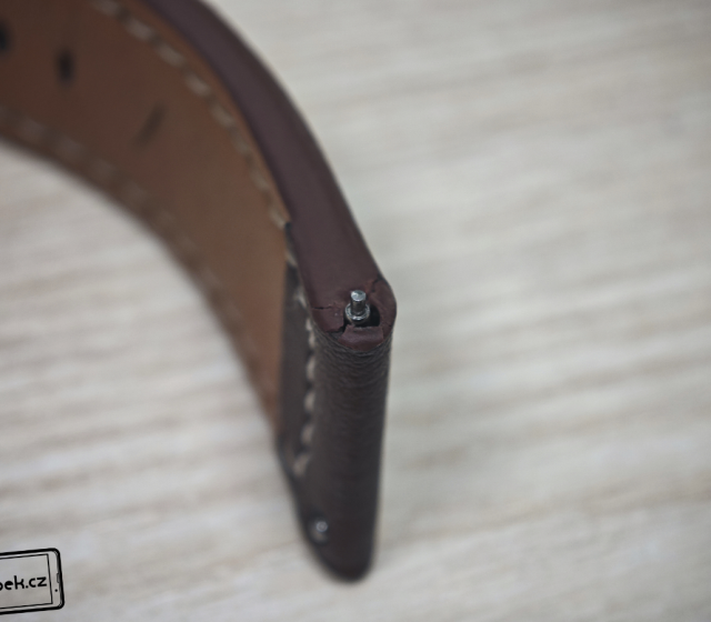 Vyzkoušel jsem tři kožené řemínky a plně spokojený jsem se dvěma černými. Vypadají hezky, nezaznamenal jsem žádnou alergickou reakci, a i po delším používání je jejich kvalita stále příkladná. Hnědý spíše koženkový řemínek také vypadá moc pěkně, ale během používání jsem se chytil o větev a v okolí stěžejky došlo k poškození. Kvalita tedy není nejvyšší, ale vypadá vážně dobře.