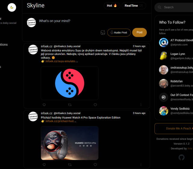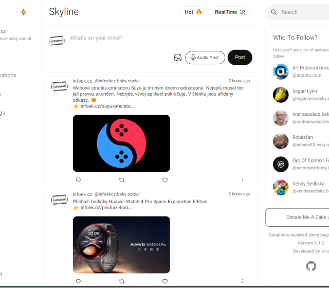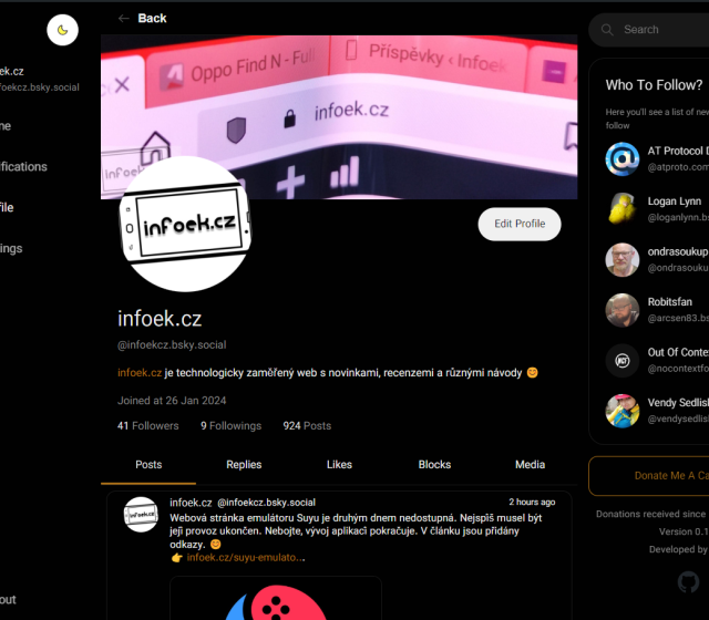 Vznikl také webový projekt Kite pro desktopy bez ohledu na operační systém. Jeho prostředí je velice jednoduché, ale plně funkční. Stačí se jen přihlásit a ihned můžete měnit světlé nebo tmavé prostředí, prohlížet novinky ve feedu, procházet fotkami a Bluesky běžně používat. Vpravo máte k dispozici také panel s doporučenými profily ostatních uživatelů. Vlastně mi to připomíná tehdejší Twitter.