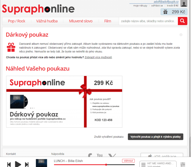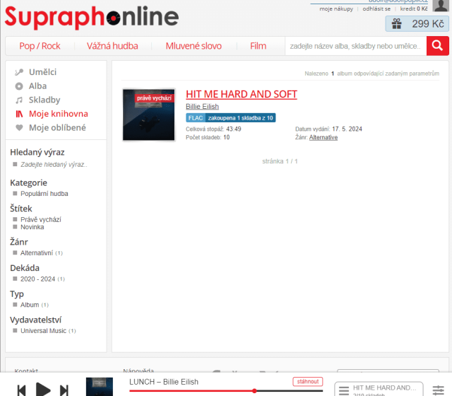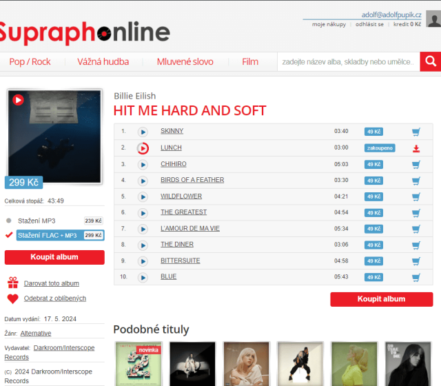 Kde je ale možné skladby nebo alba digitálně kupovat ve vysoké kvalitě? Ono to je docela složité, protože většina takových služeb poskytuje nízkou MP3 kvalitu nebo neumožňuje nakupování uživatelům v ČR. Stále tu ale je česká služba SupraphOnline.cz, která nabízí slušné množství kvalitních alb, možnost si zakoupit pouze jednotlivé skladby, stahovat v „prašivém“ MP3 formátu nebo ve vysoké kvalitě ve formátu FLAC. Všechny zakoupené skladby a alba budete mít uložená pod svým účtem a kdykoliv si je můžete stáhnout. Platba je možná skrze ověřené a legitimní platební brány. Pokud chcete někomu udělat radost, můžete dané album zakoupit a někomu darovat poukaz, aby si ho mohl stáhnout.