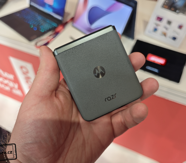 Lenovo dnes stojí také za mobily značky Motorola. Vystaven byl i mobil Motorola Razr 40 s ohebným displejem a véčkovou konstrukcí. Velmi mile překvapen jsem tím, jak se výrobce popasoval s displejem. Dle mého názoru se jedná o výrazně lepší provedení, než je tomu o konkurenčních mobilů Samsung. Má i menší prohlubeň v místě ohybu, reaguje na jedničku a velmi pěkné je barevné podání i pozorovací úhly. Líbila se mi i vystavená barevná varianta Sage Green.