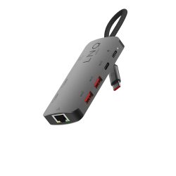 Kompaktní zařízení, vyrobené ze 100% recyklovaného aluminia, umožní rozšíření schopností jakéhokoli notebooku. Nechybí extrémně rychlé USB 3.2 Gen2 porty umožňující rychlost přenosu až 10 Gb/s, Power Delivery s výkonem 100 W, ani 2,5Gb/s ethernetový port. Samozřejmostí jsou běžné USB porty pro periferie jako je klávesnice či myš a dvojice USB-C portů zajišťující neomezené využití moderních zařízení a dobíjení zároveň. Nepostradatelnou třešničku na dortu pak představuje odolný, nylonem opletený kabel pro spojení s notebookem prostřednictvím USB-C konektoru s podporou Thunderbolt4 a USB4.