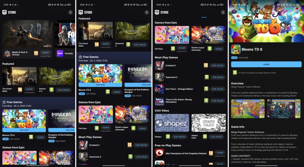 Pokud tuto službu již používáte kvůli Fortnitu či Fall Guys, můžete si nainstalovat novou aktualizaci. Je již dostupná pro Android a iOS a konečně umožňuje stažení bezplatných nebo placených mobilních titulů. Mezi nimi je Blade of God X: Orisols, česká hra Samorost 3, Pilgrims a další. Podporováno je propojení her s EPIC účtem a zálohy vašich postupů do cloudu.