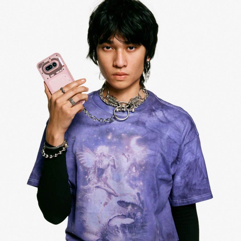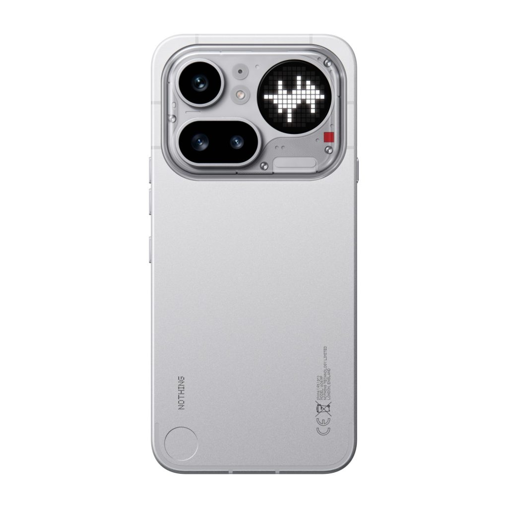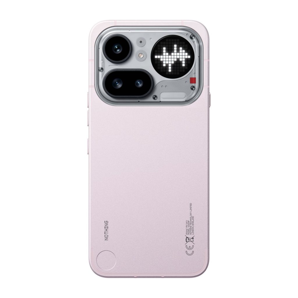 Ikonický průhledný design spojuje fotoaparát a rozhraní Glyph Matrix v jeden celek, který dokonale splývá s kovovým unibody tělem. Výsledkem je hladký povrch bez viditelných spojů, který efektně láme světlo. Stříbrné a černé provedení navazuje na tradici značky, zatímco metalická růžová přináší hřejivý a stylový pohled na designovou filozofii Nothing.