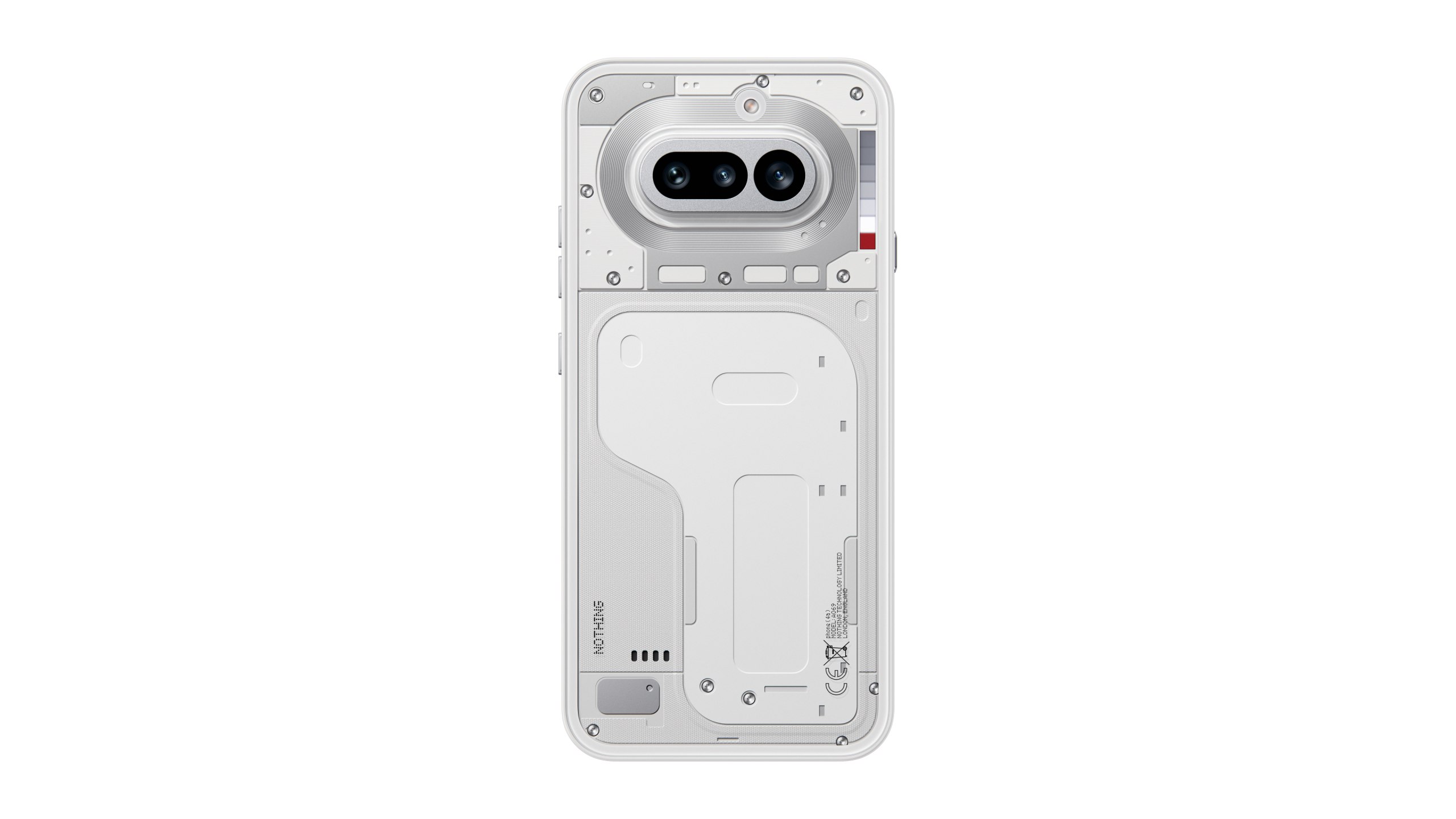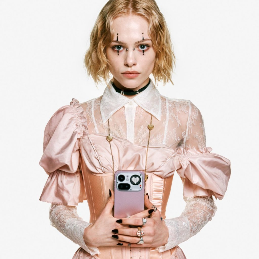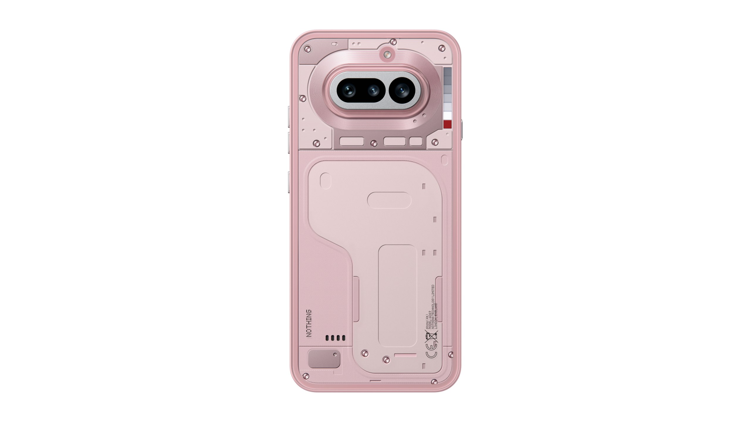 Ikonický průhledný design spojuje fotoaparát a rozhraní Glyph Matrix v jeden celek, který dokonale splývá s kovovým unibody tělem. Výsledkem je hladký povrch bez viditelných spojů, který efektně láme světlo. Stříbrné a černé provedení navazuje na tradici značky, zatímco metalická růžová přináší hřejivý a stylový pohled na designovou filozofii Nothing.