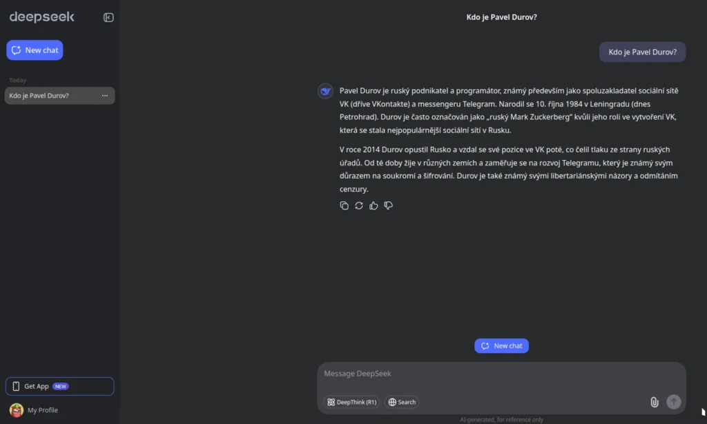 DeepSeek není žádnou novinkou, ale až teď se dočkala masivního úspěchu. Jedná se o chatbota podobnému Husky AI, Copilotu nebo třeba Gemini od Googlu. Stačí zadat požadovaný dotaz, případně nastavit hluboké přemýšlení či jiný režim a dotaz odeslat. Během chvilky vám algoritmy poskytnou všechny nalezené informace. Můžete si je následně ověřit v uvedených zdrojích nebo algoritmu svěřit fotku, screenshot či dokumenty a zadat mu příkazy.