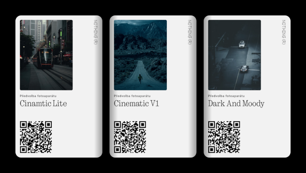 Předvolby s filtry a nastavením fotoaparátů mobilů Nothing