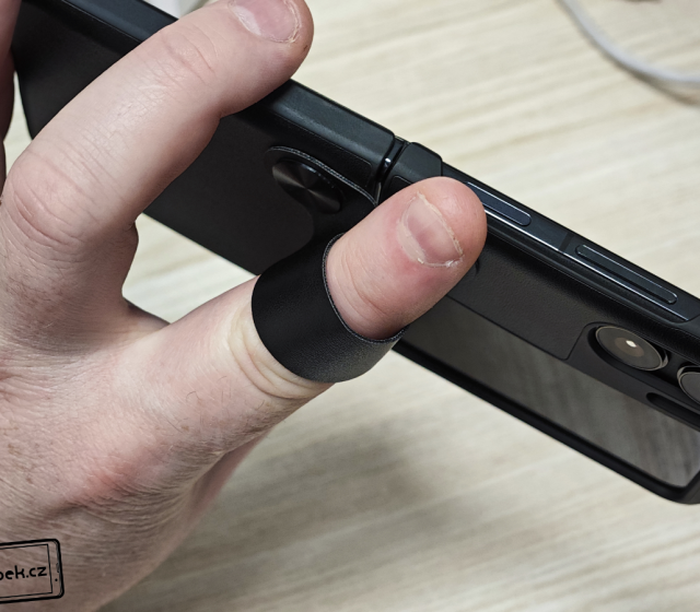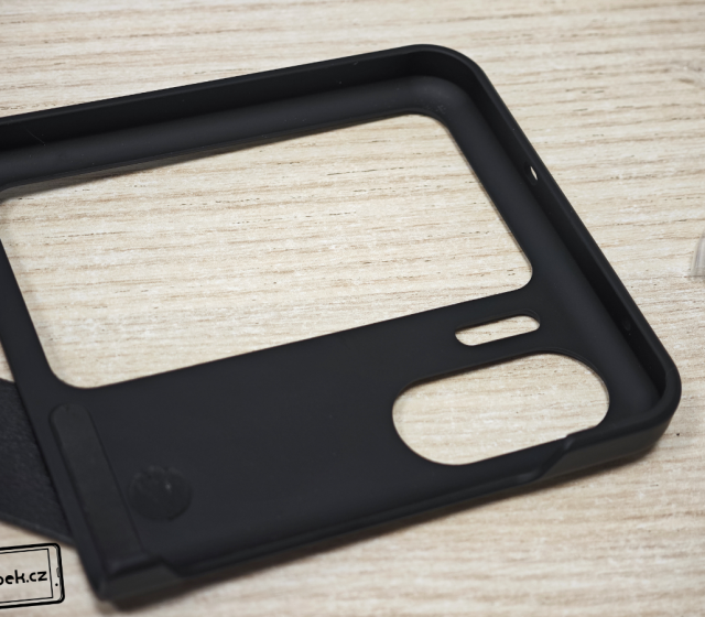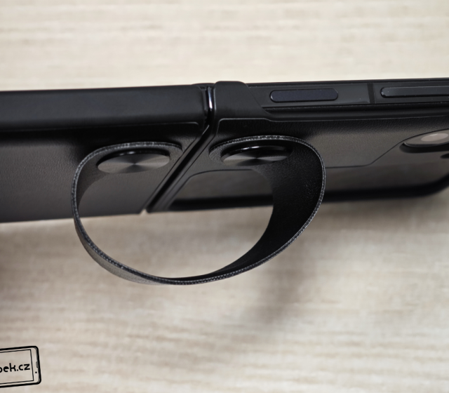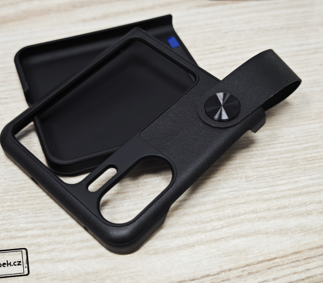 Od čínského prodejce mi dorazil kryt navazující na originální kryt od Oppa a má i praktické poutko. To poslouží nejen pro přidržení mobilu, ale můžete ho otočit a mobil bude držet na stole během sledování videa. Celý kryt je z plastu a nachází se na něm imitace kůže. Vypadá elegantně a konstrukci mobilu sedí skvěle.