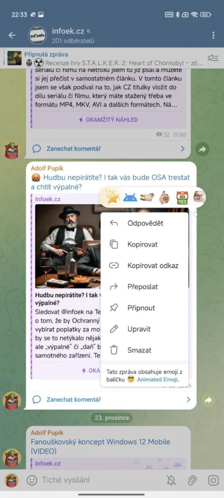 Telegram dávno není obyčejnou chatovací aplikací, ale stala se z něj sociální síť. Má různé skupiny, veřejné kanály, mini aplikace a hry a oblibu si získala kvůli vysoké úrovni svobody projevu. Za každou takovou službou se skrývají šikovní vývojáři a další zaměstnanci. Musí si na sebe nějak vydělat, což je pro mnoho služeb velmi obtížné. Telegram nechce sbírat a prodávat citlivá data uživatelů, proto zavedl dobrovolné předplatné Telegram Premium a rozumnou formu reklam. Rok 2024 byl prý pro Telegram úspěšným a konečně je ziskovým.