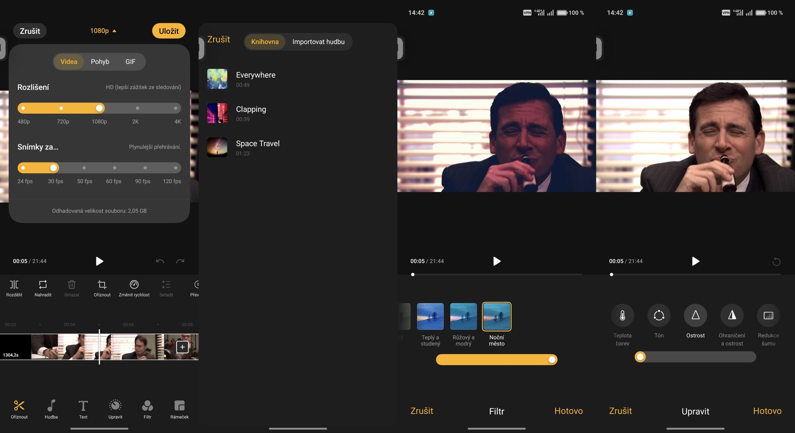Nově v galerii můžete hned po jejím otevření prstem označit více fotek nebo videí a pomocí AI vytvořit video. Implementován bude filtr, hudba a případné další úpravy. Editor nyní umí importovat více fotek a vytvořit z nich video prezentaci. Manuálně si můžete přidávat efekty, texty, hudbu, stříhat video a provádět další běžné úpravy.