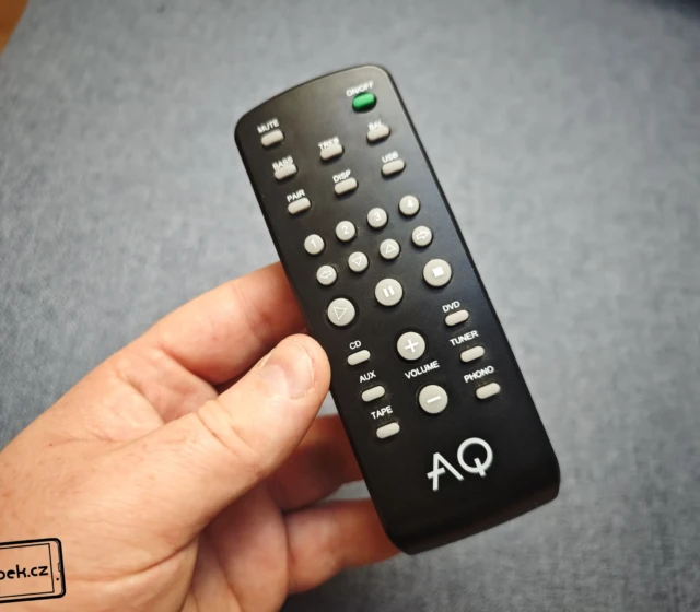 Reprosoustava je řádně zabalena ve velké krabici. K reprosoustavě také dostanete vše důležité, a to starý známý dálkový ovladač od AQ, napájecí adaptér a propojovací kabel s 3,5 mm jackem na 2x RCA.
