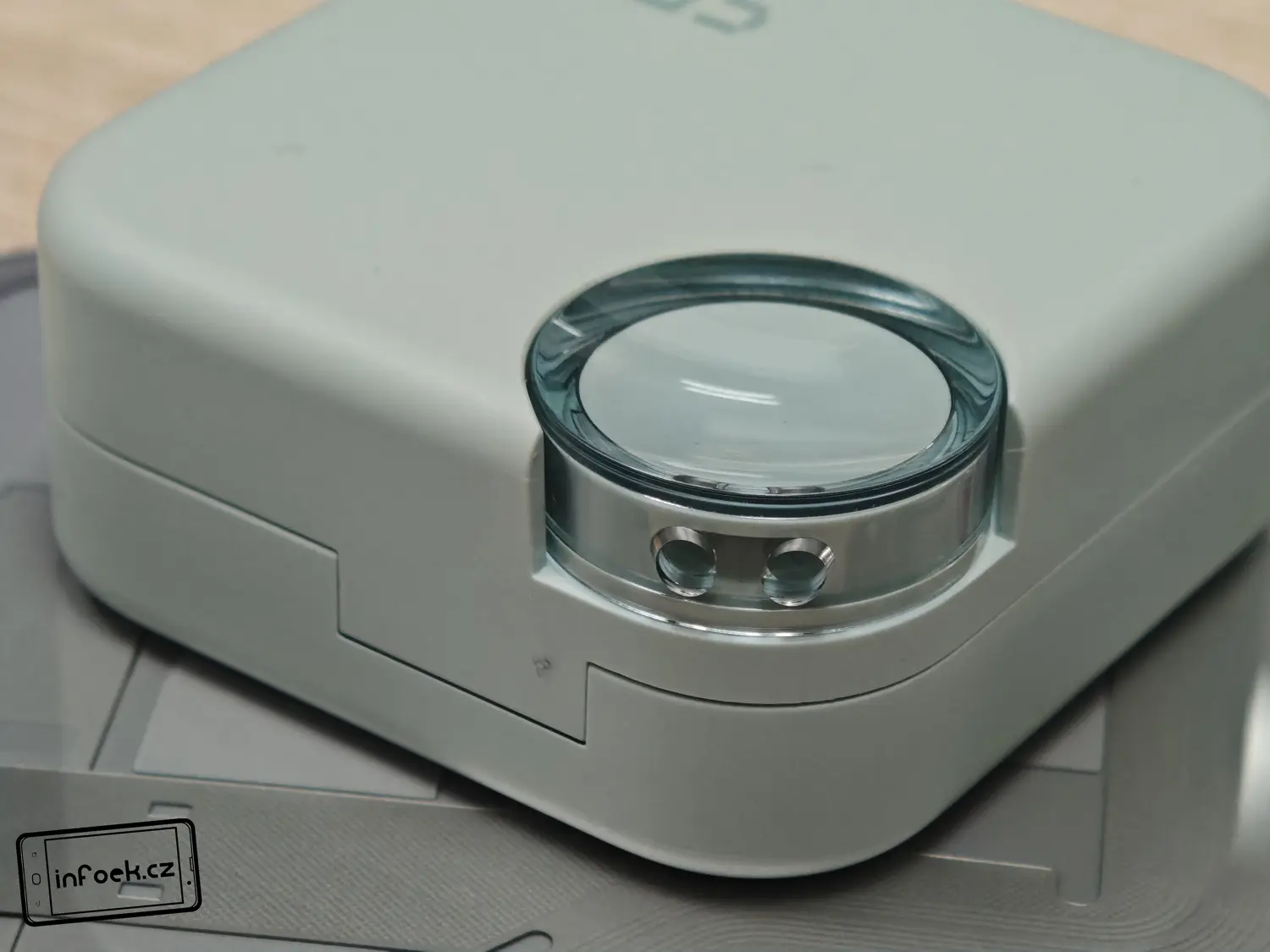 Nabíjecí krabička vypadá takřka totožně s krabičkou od vyššího modelu CMF Buds 2 Plus. Také má designový prvek s otočným kolečkem, ale tentokrát výrobce sáhl po průhledném plastu. Nachází se v něm také otvor pro uchycení poutka. Na krabičce dále najdeme logo, diodu signalizující nabití a stav párování. USB-C samozřejmě taktéž nechybí.