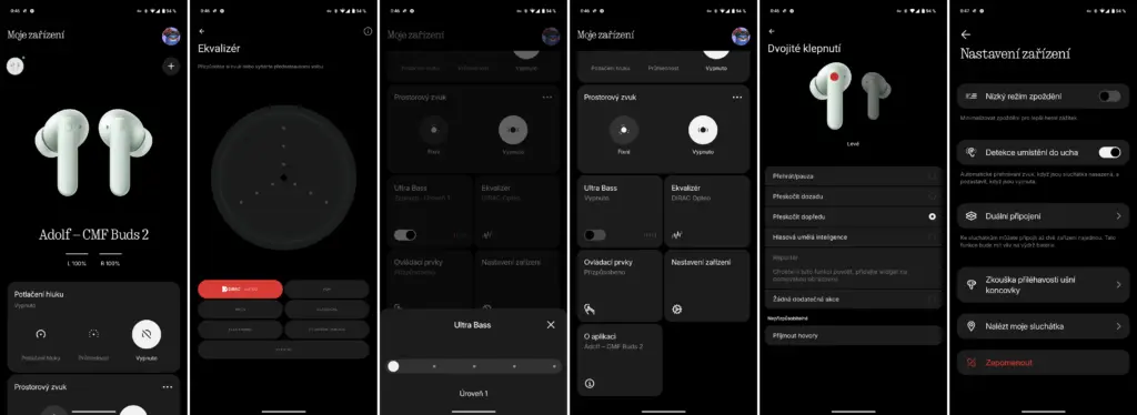 Výrobce ke sluchátkům nabízí bezplatnou mobilní aplikaci Nothing X pro Android a iOS. Nabízí příjemné uživatelské prostředí v češtině a poměrně dost nastavení, kterí bych u sluchátek v tomto cenovém segmentu neočekával.
