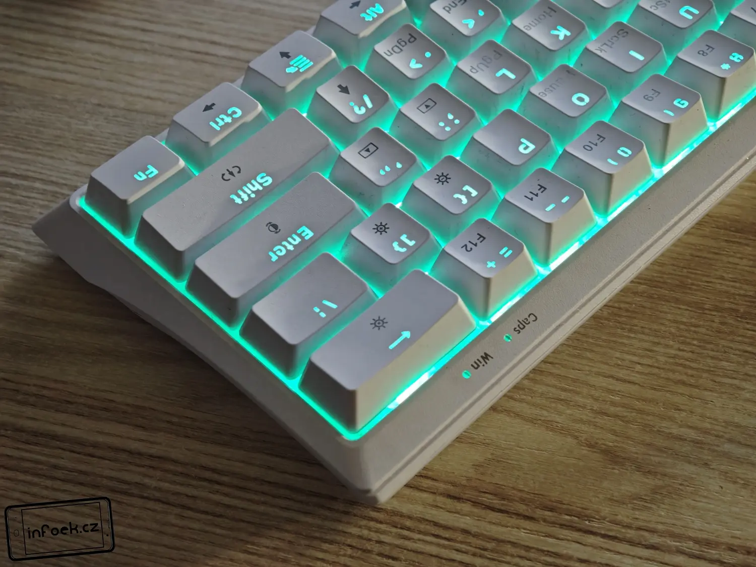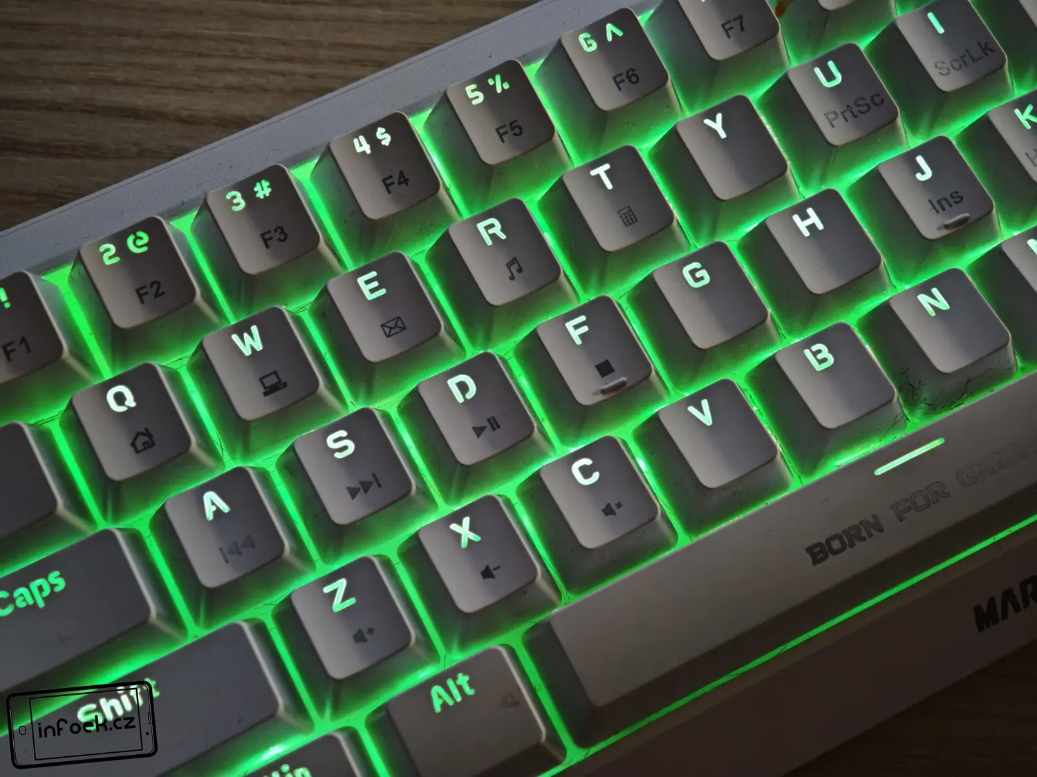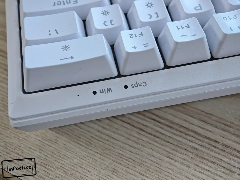 Marvo Hecate 61R míří na uživatele, co si potrpí na kompaktní rozměry. Nenajdete tedy žádnou zbytečnou část, a to ani numerický blok. Já osobně numerické bloky nenávidím na všech klávesnicích, a to i na noteboocích. Tento model je tedy z mého pohledu ideálním. Nechybí však ani malé modré diody „Caps“ a „Win“.