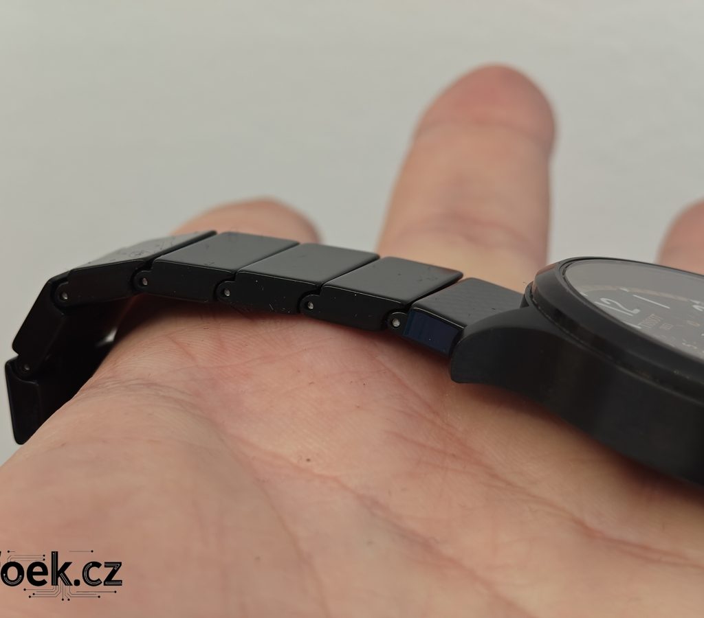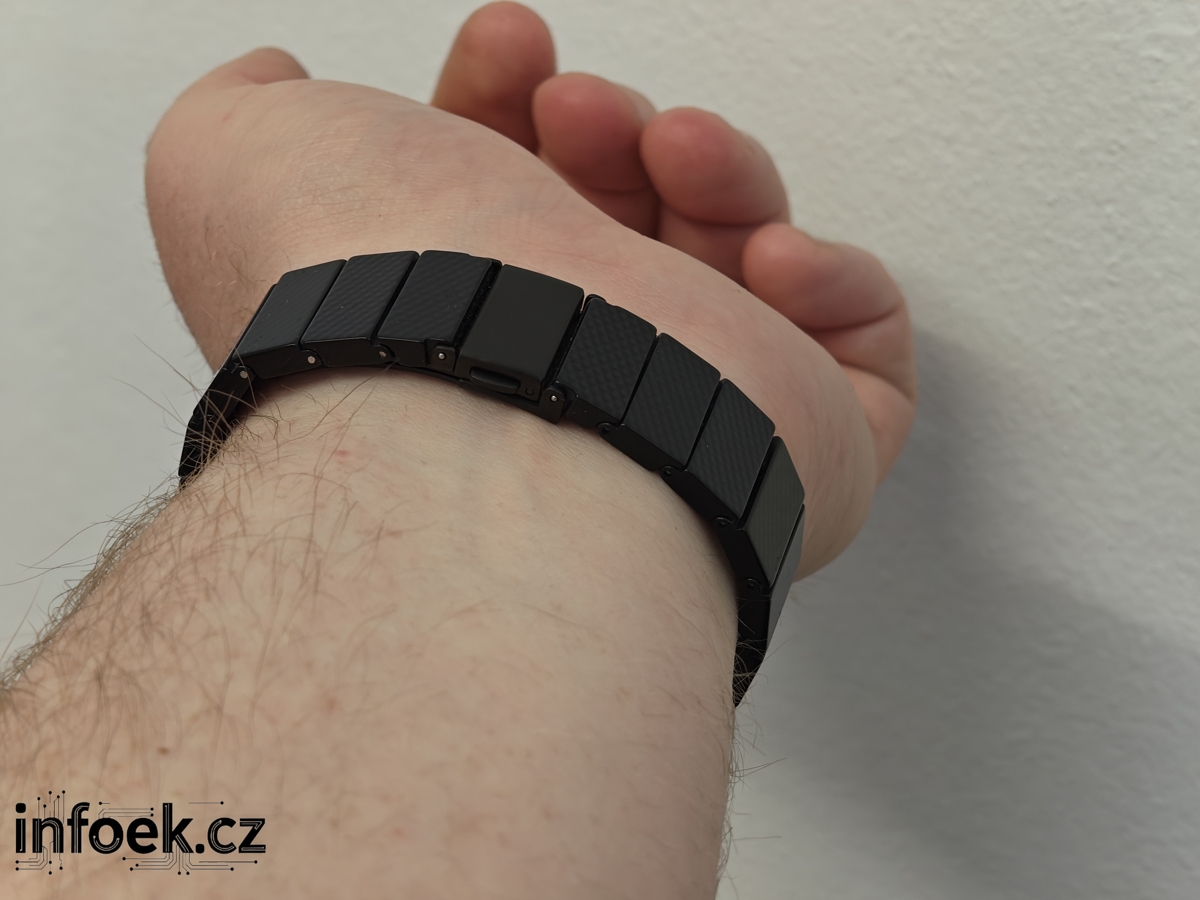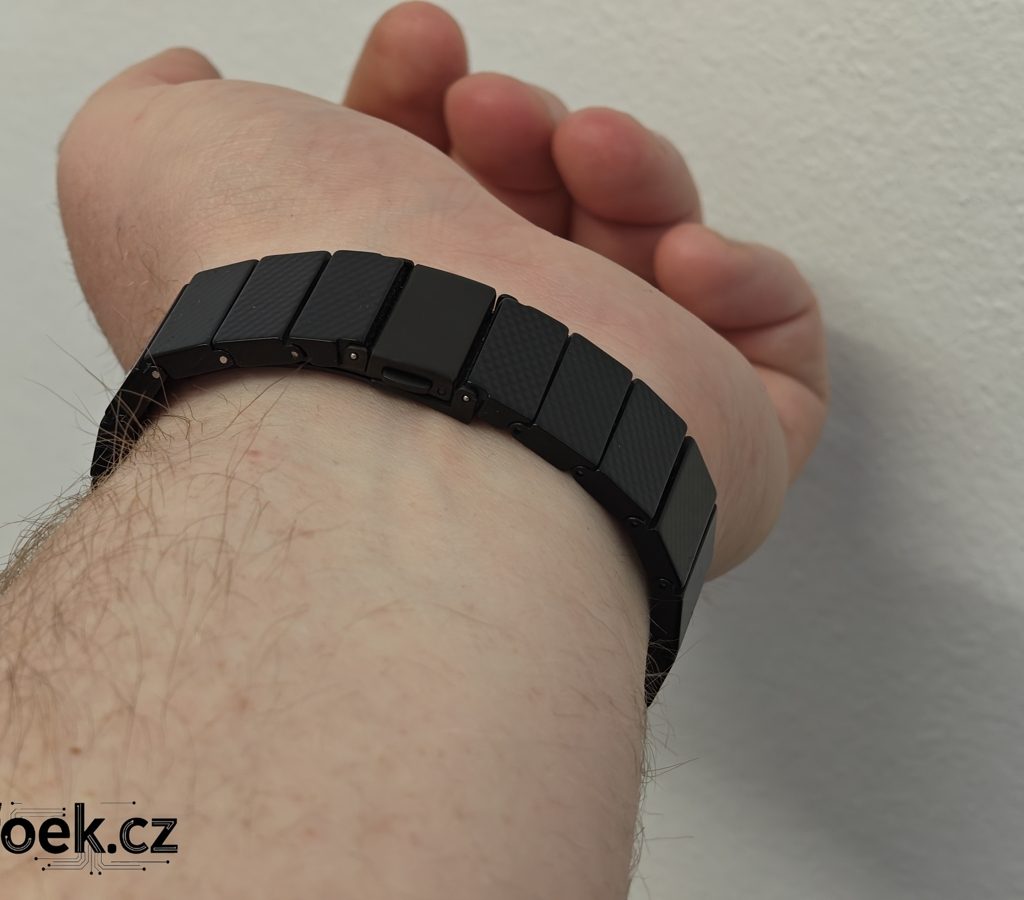 Proč je zpracování řemínku zajímavé? Jedná se o velice odolný materiál vyrobený z epoxidové pryskyřice. Je nejen odolný, ale i šetrný k pokožce a nádherně lehký. Dle výrobce řemínek váží pouze 33 gramů.