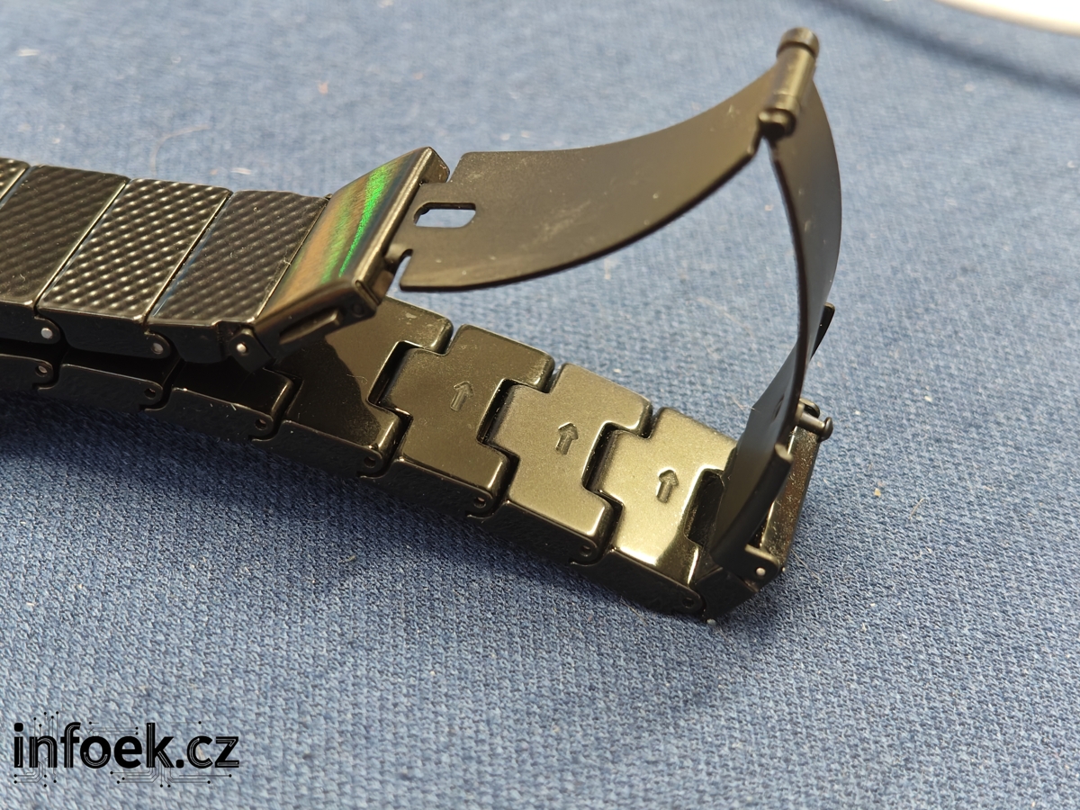 Zapínací spona je z nerezové oceli a příjemně překvapen jsem tím, že se na ní zatím neobjevují škrábance. Očekával jsem, že se na ní objeví velice brzy i při kancelářské práci. U mnoha spon se to totiž stává. Pochválit musím nejen design, ale i zpracování celého řemínku.