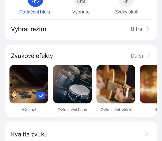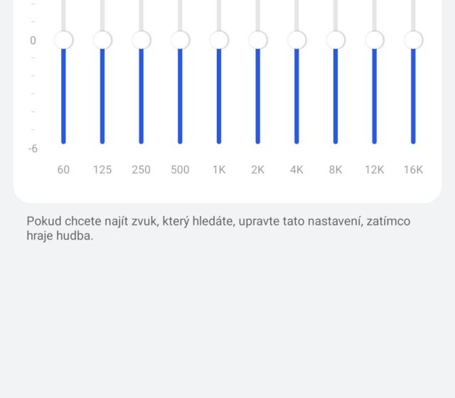 Po stránce zvuku jsou na tom sluchátka výborně. Vyzkoušel jsem několik hudebních žánrů nebo podcastů. Basy jsou na poměry špuntových sluchátek do uší znát a jsou důrazné, přesto jsou slyšet i středy nebo výšky. Chválím i maximální hlasitost. V porovnání s jinými modely FreeBuds je znát, že výrobce udělal u měničů znatelný pokrok. Líbí se mi i přizpůsobení zvukového podání, které si můžete vybrat v mobilní aplikaci. Zvýraznit můžete třeba basy nebo výšky, k dispozici je i režim pro výrazný hlas např. při podcastech, režim pro symfonie a další. Když vpravo nahoře klepnete na tlačítko +, můžete si v ekvalizéru nastavit parametry zvuku k obrazu svému, zvukový efekt si pojmenovat a uložit. Výborná byla synchronizace zvuku s videem během sledování filmů i hraní her.