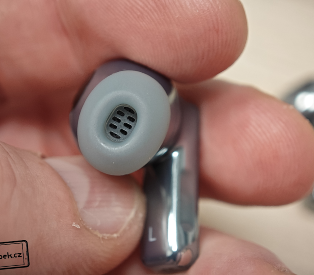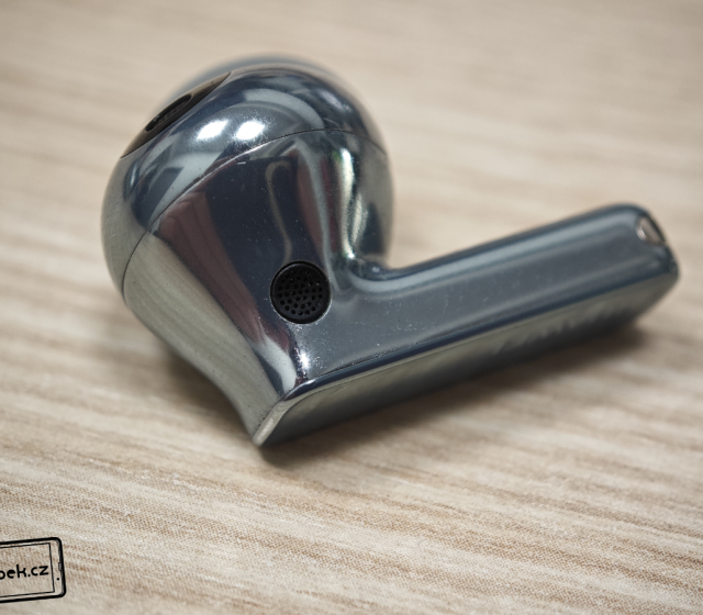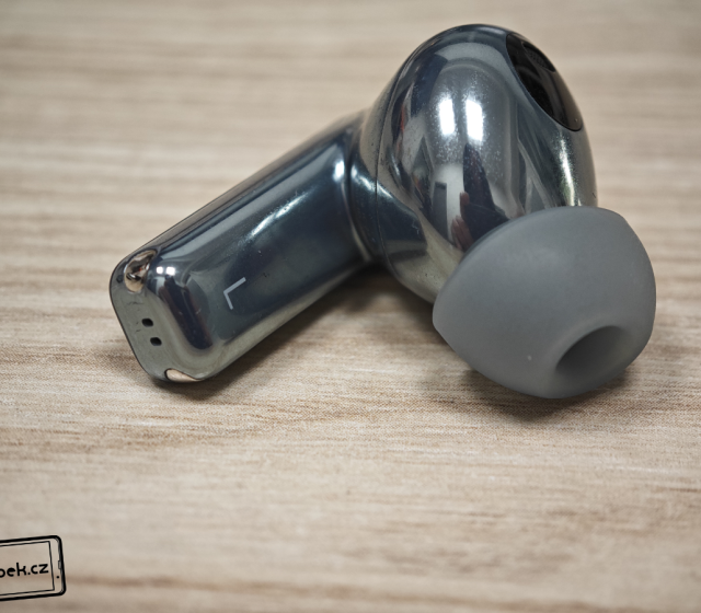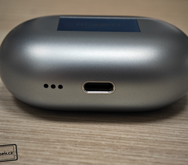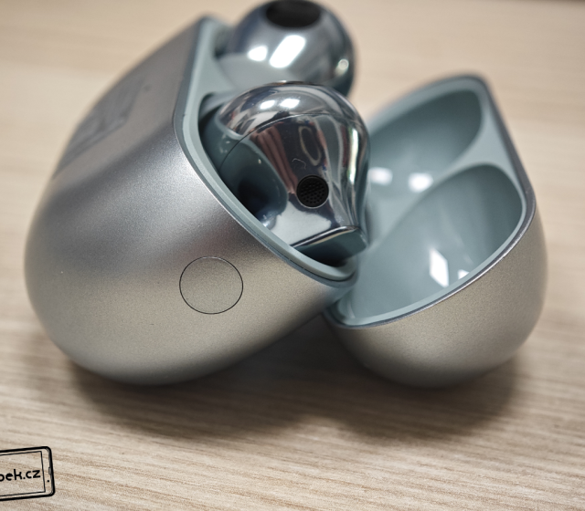 Na krabičce se nachází skleněný obdélník s logem výrobce. Během testování jsem zjistil, že sklo je opravdu odolné, protože jsem sluchátka nosil každý den v kapsách s mobilem, ale i v batohu s dalšími předměty. Na skle jsem nezaznamenal žádný škrábanec. Na první pohled si ho třeba ani nevšimnete, ale na straně je i tlačítko pro vyvolání režimu párování. Vespod krabičky je USB-C konektor a zdířky malého reproduktoru. Dále na krabičce najdeme barevnou diodu signalizující stav nabití. Horní víko krabičky je zpracováno také ukázkově. Pant je totiž kovový a sluchátka uvnitř drží pevně díky magnetům.