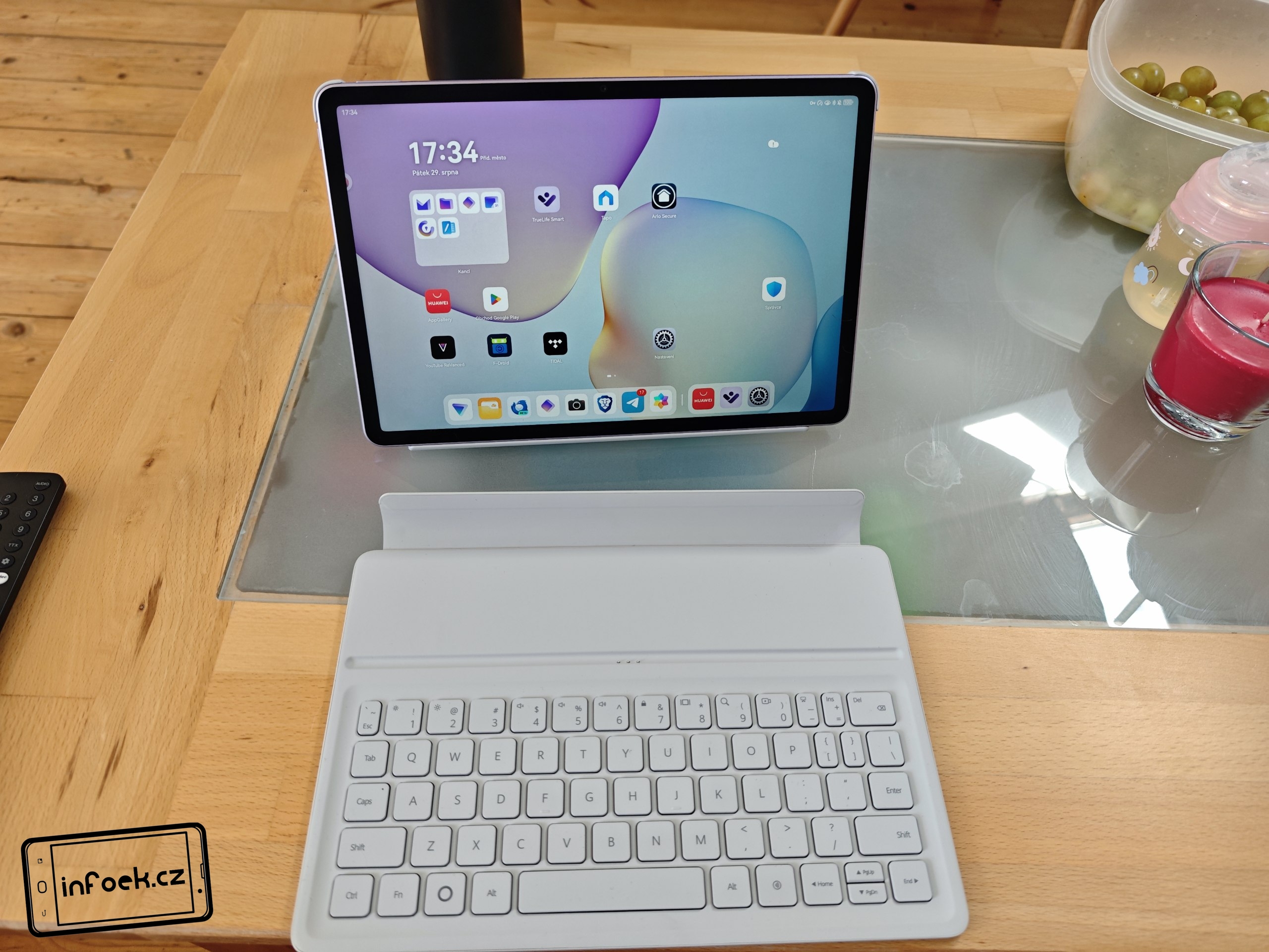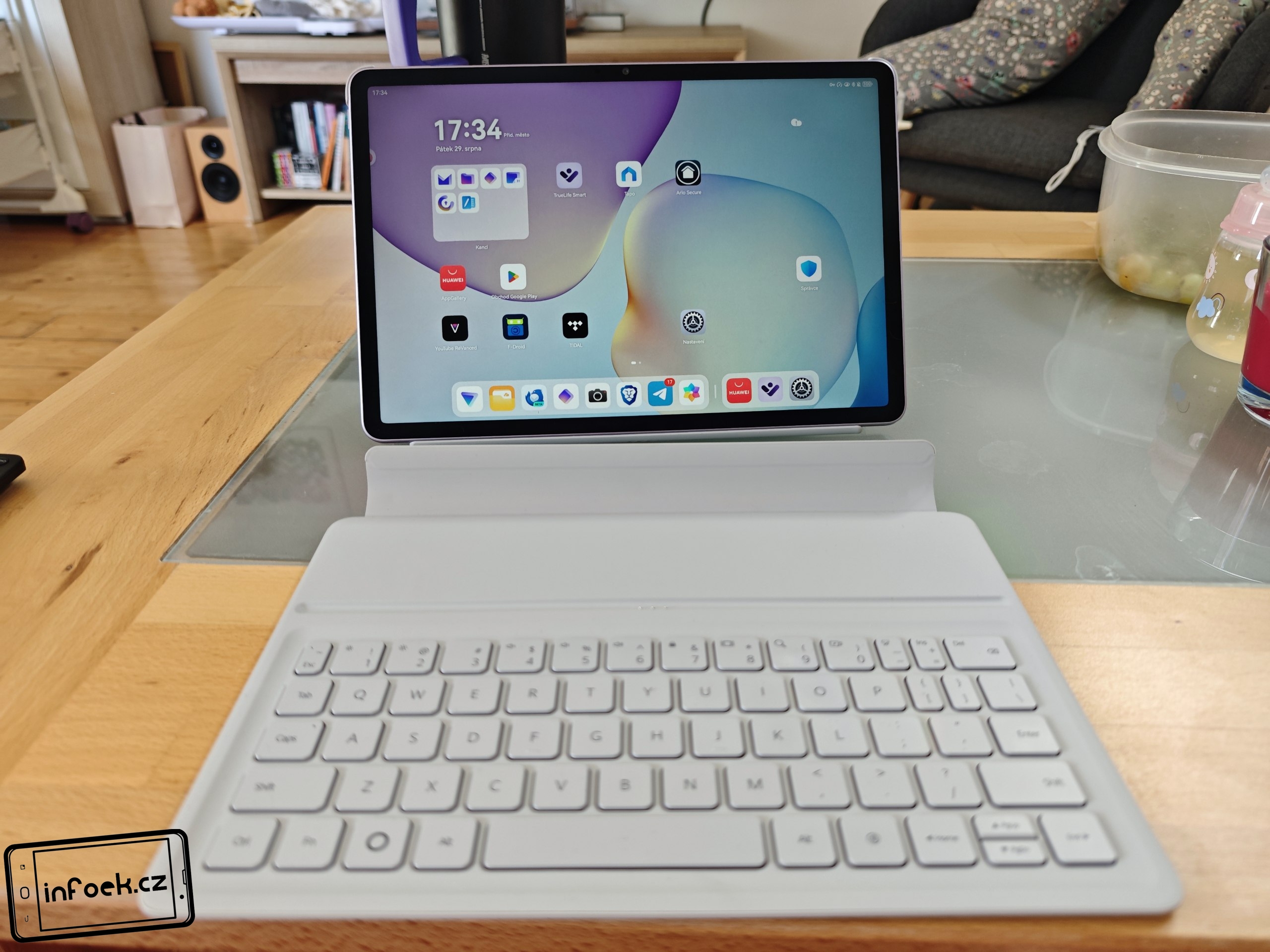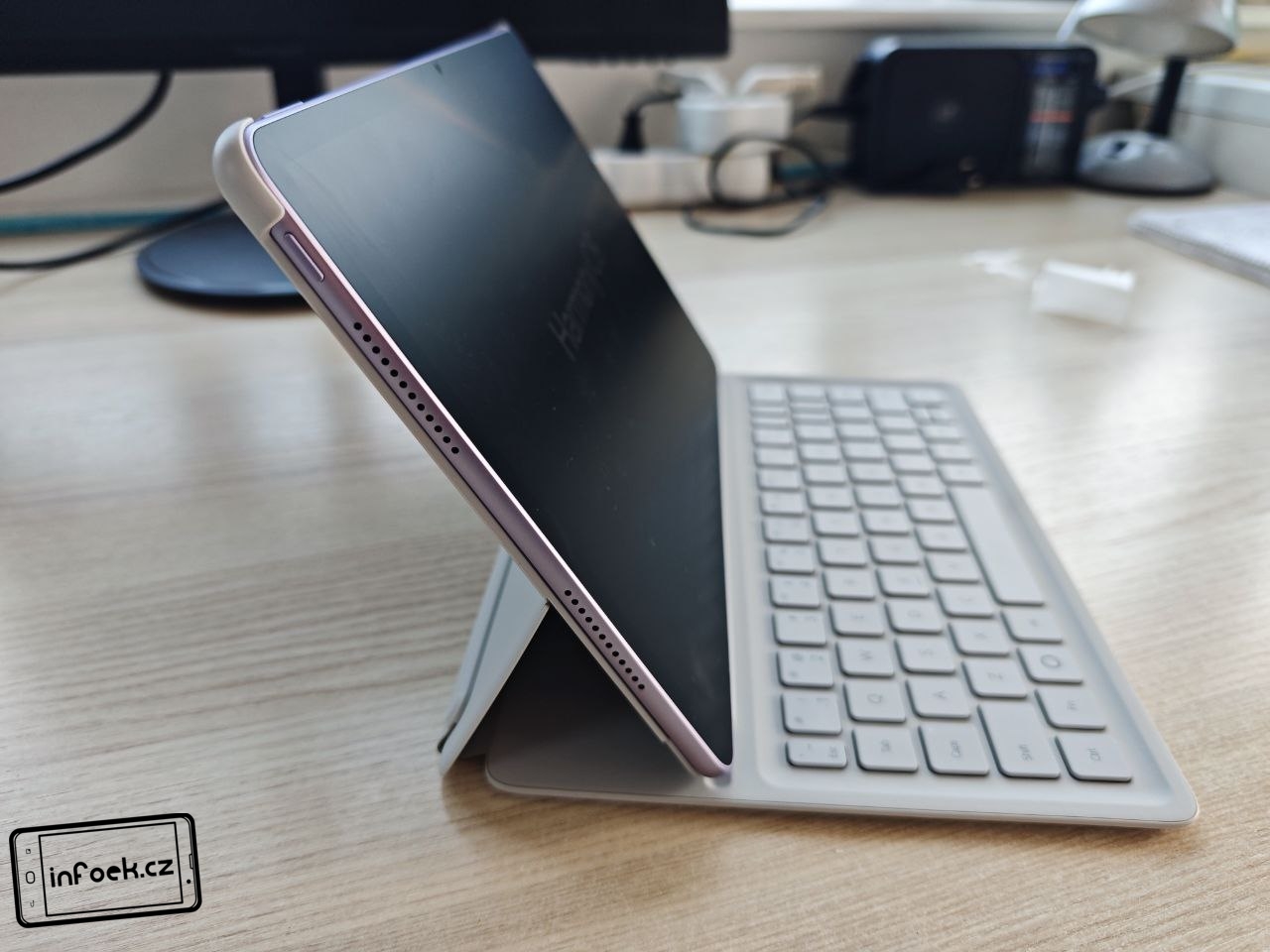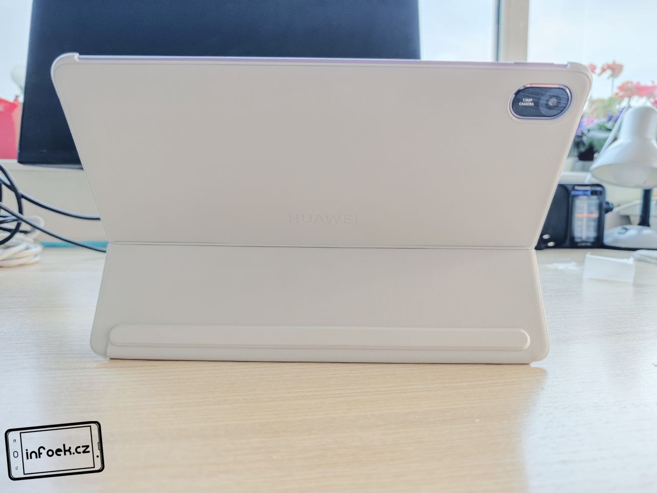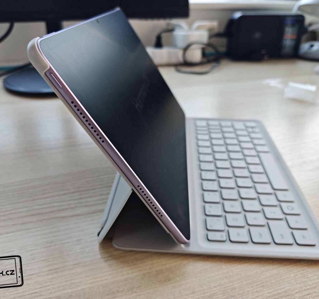 Na našem trhu se prodává mnoho podobných tabletů, ale většinou k nim nedostanete žádné příslušenství navíc. Huawei však bez nutnosti jakéhokoli příplatku přibalil k MatePadu ochranné pouzdro s klávesnicí. Nejde o levně působící doplněk – naopak, konstrukce působí prémiovějším dojmem. Kryt je složen ze dvou částí, které se snadno spojují pomocí magnetů. Můžete tak používat samotný tablet s pouzdrem a klávesnici klidně používat vzdáleně přes Bluetooth. Klidně ji ale můžete magneticky uchytit a používat kryt s klávesnicí propojené – bude docházet k nabíjení klávesnice.