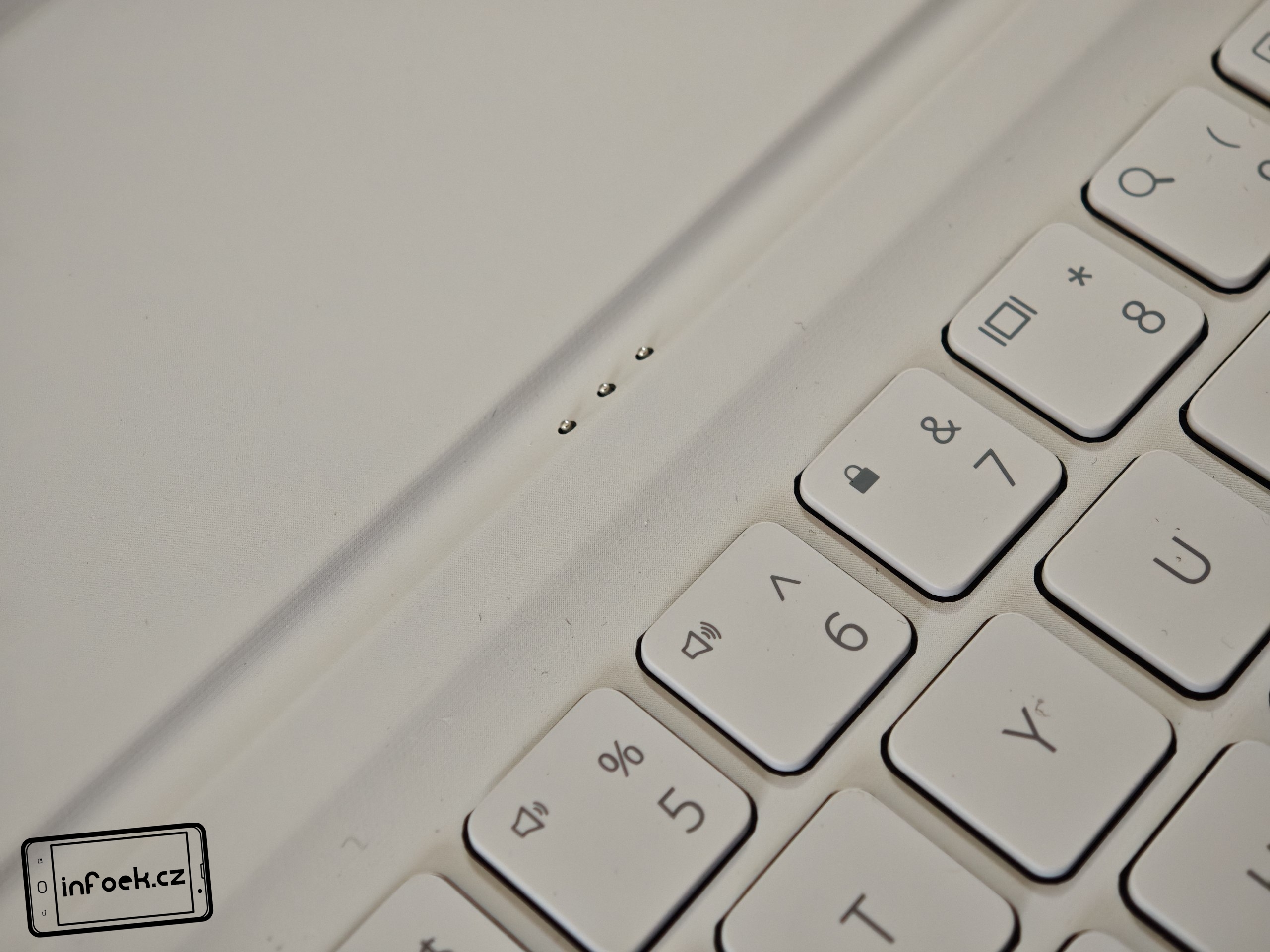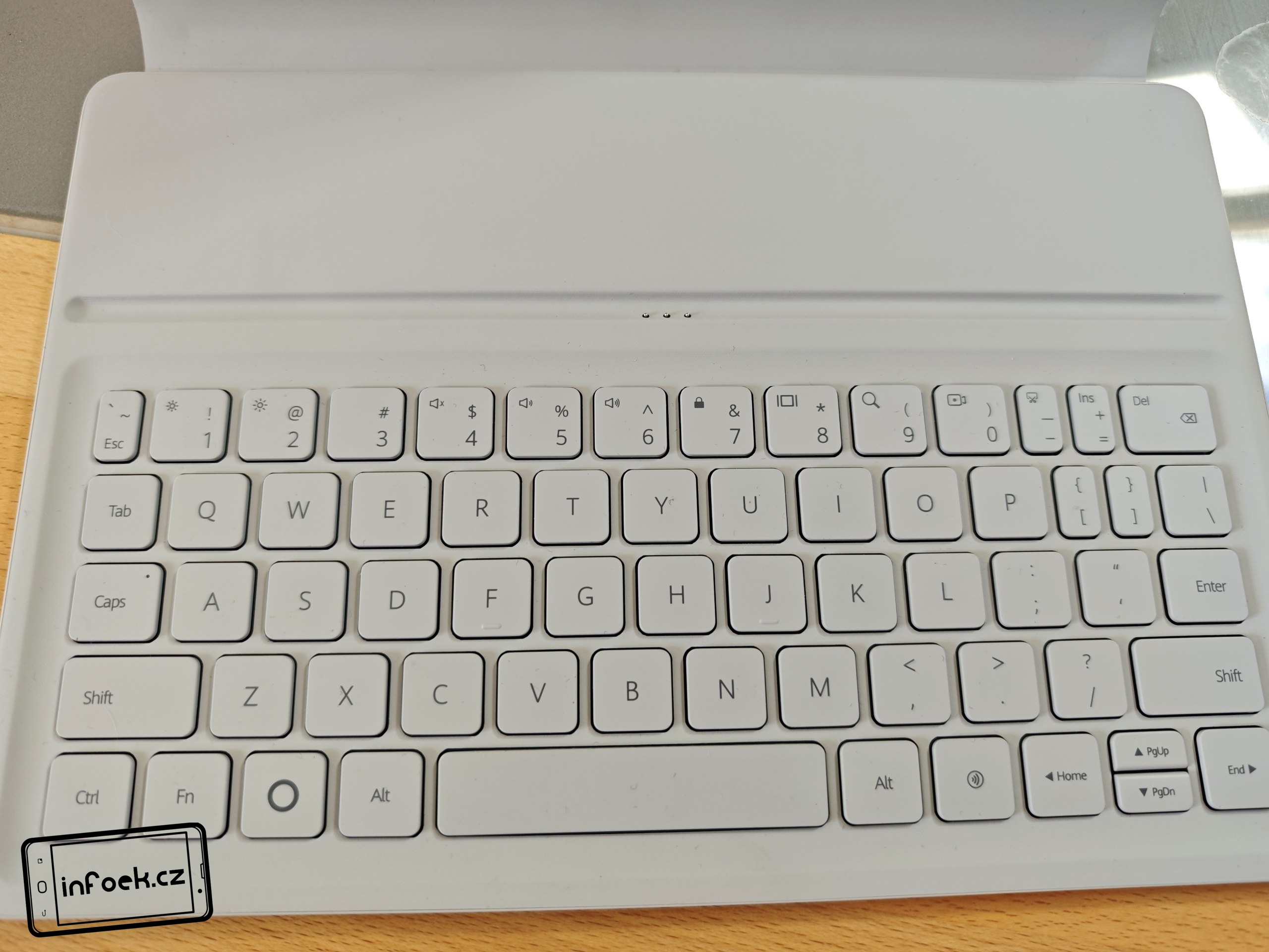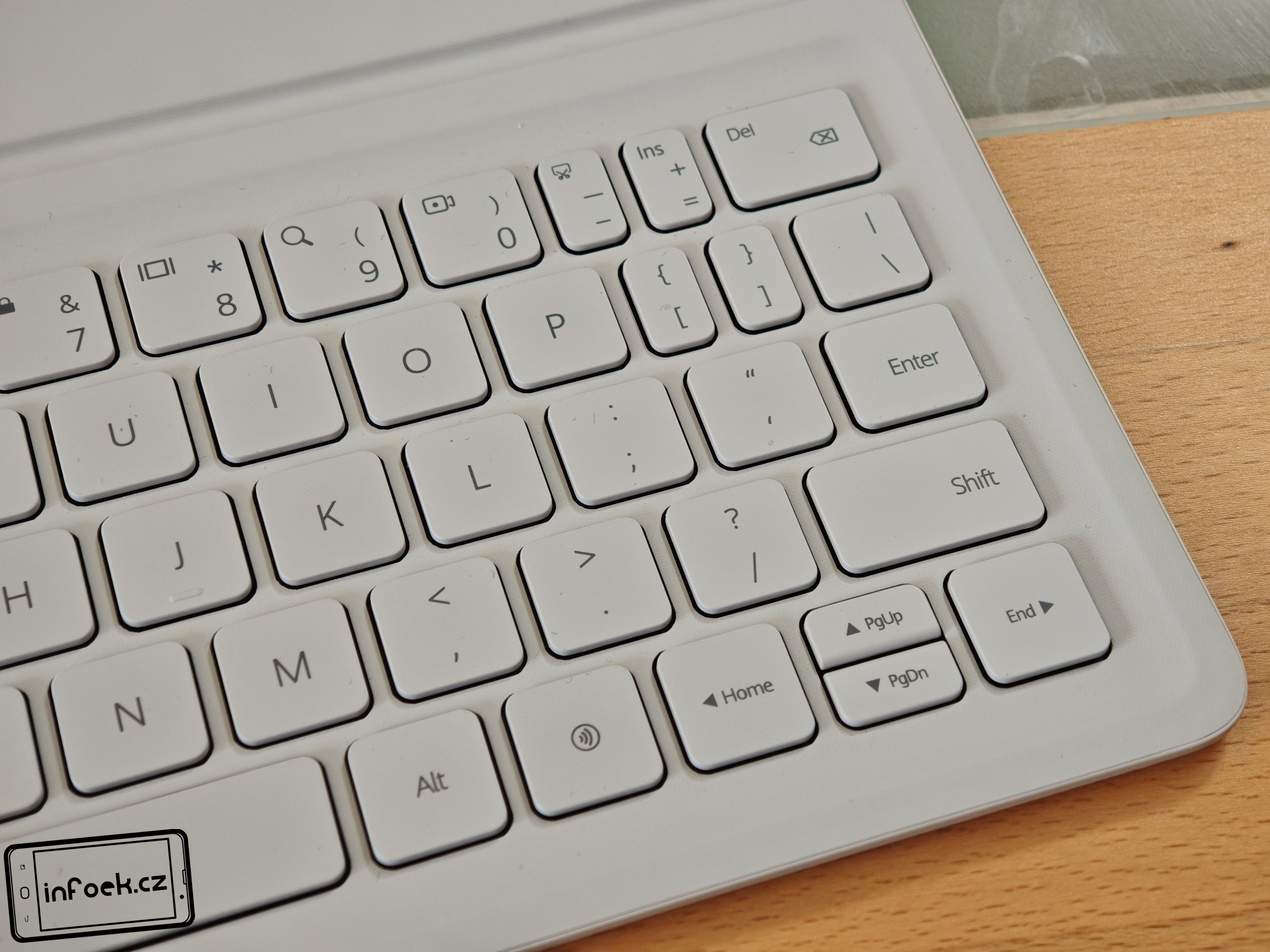 Klávesnici jsem během testování využíval velmi často a upřímně si nedokážu představit, že bych takto velký tablet používal jen přes dotykový displej. Rád k němu připojím i Bluetooth myš a pracuji pak v podstatě jako na notebooku. Klávesnice má sice anglické popisky, ale na ovládání jsem si nemusel dlouho zvykat. Nechybí zde klávesy Fn se zkratkami, dále Alt, Tab, Caps Lock, Shift nebo klasický Enter. Horní a dolní šipky jsou sice poměrně malé, ale v praxi jsem je příliš nevyužíval. Přímo se šipkami navíc fungují i klávesy Home, Page Up, Page Down a End. Zajímavostí je speciální klávesa s kroužkem – po jejím stisku a následném použití šipek se můžete velmi rychle přepínat mezi spuštěnými aplikacemi.